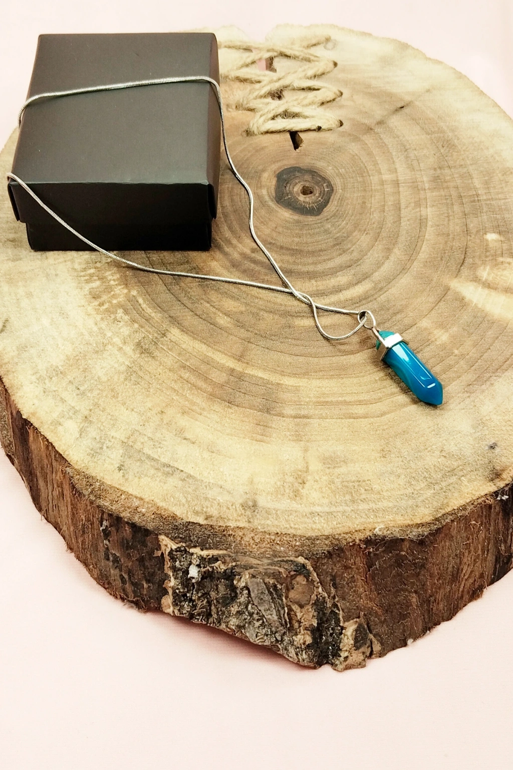 biçomi Kalsedon Doğal Taşı Zincirli El Yapımı Kolye Uç: 1,5 cm Zincir: 20 cm Kutulu