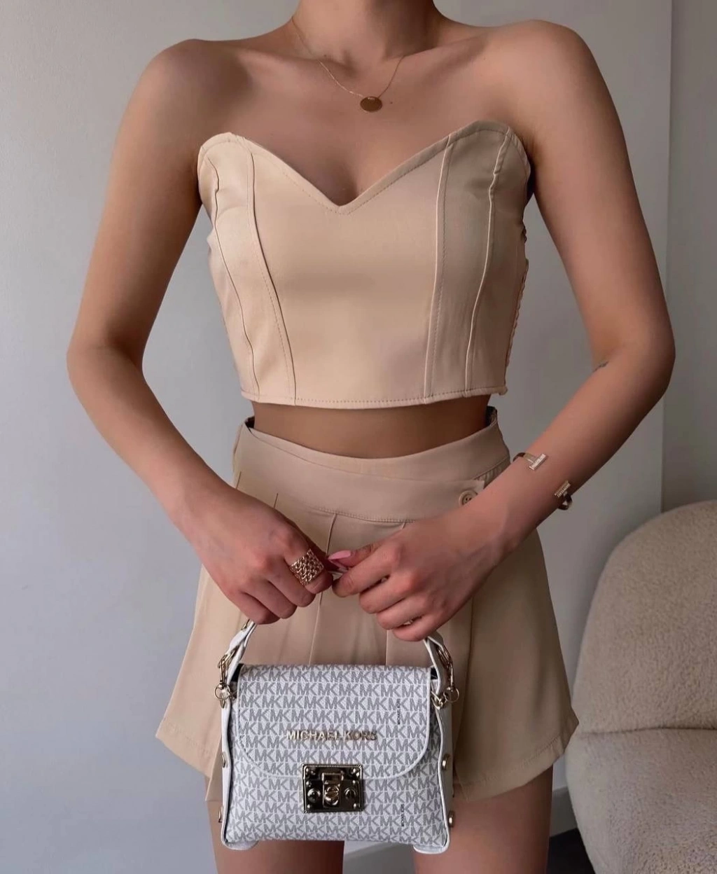 Arkadan büzgülü esnek büstiyer bej, kadın giyim kategorisindeki bluzlar arasında şıklık ve konforu bir araya getiriyor. Bu özel tasarım, hem günlük hayatta hem de özel davetlerde rahatlıkla tercih edebileceğiniz bir parça olacak.