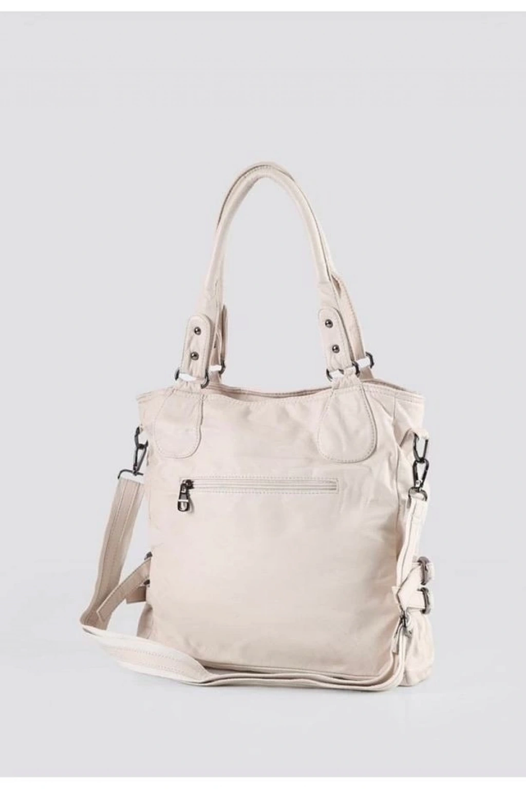 modern tasarımı ve çok yönlü kullanım imkanıyla dikkat çeken bir kadın omuz ve sırt çantasıdır. Yıkama deri malzemesi, zarif bir görünüm ve uzun ömürlü kullanım sunar. Hem omuz çantası hem de sırt çantası olarak kullanılabilen bu model, günlük yaşamınızda pratiklik ve şıklığı bir arada sunar.