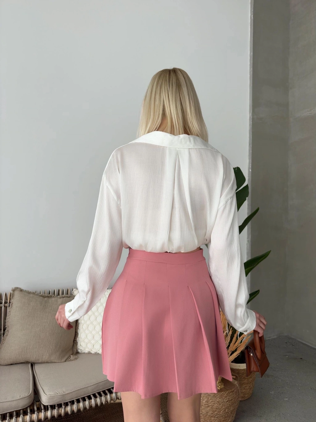 Pileli detayları ile feminen bir görünüm sunar.