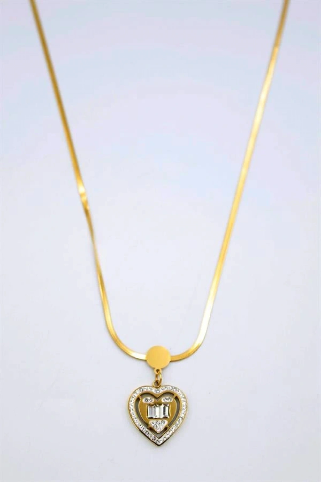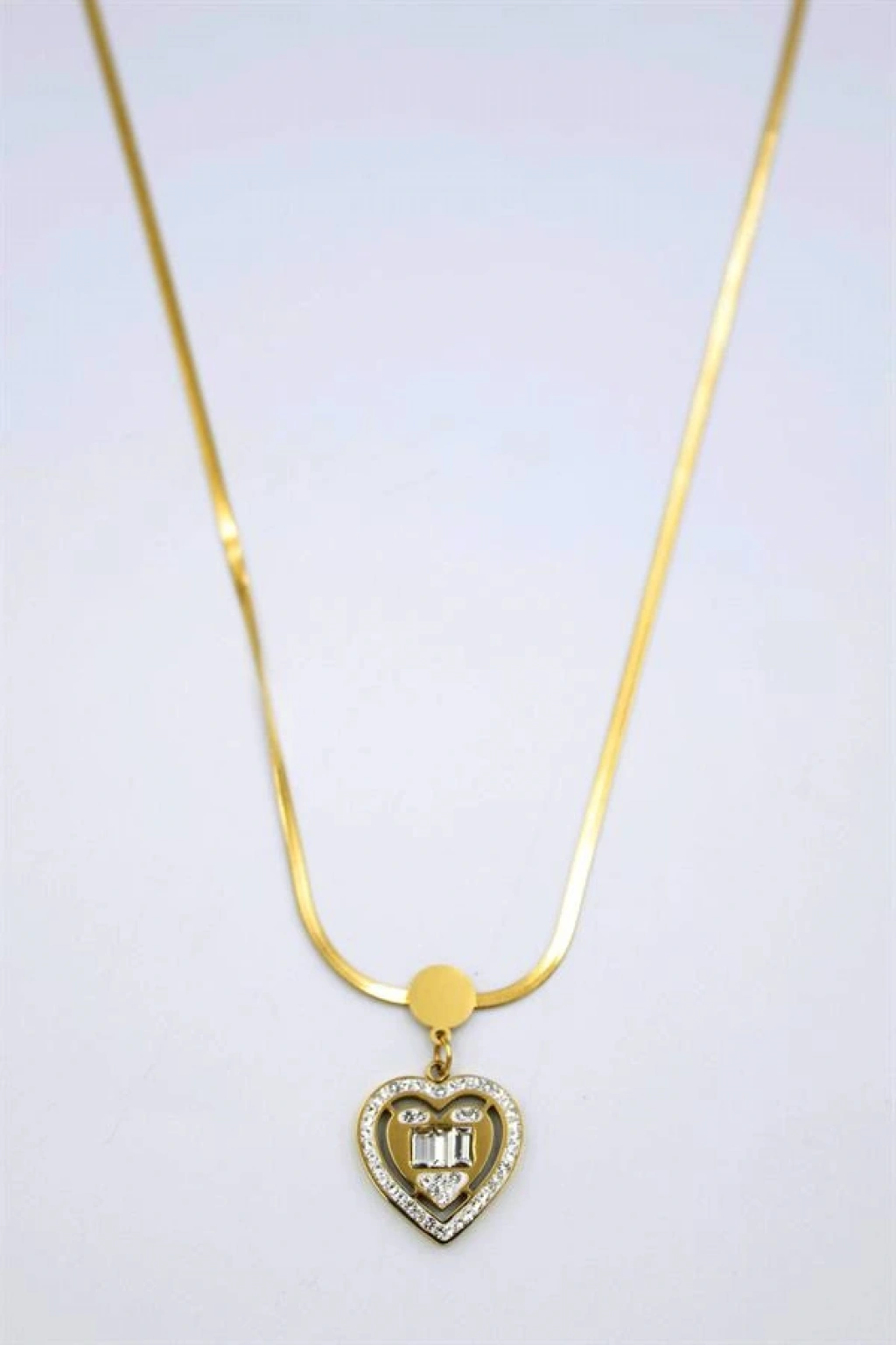 Baget Taşlı Kalp Kolye - Altın