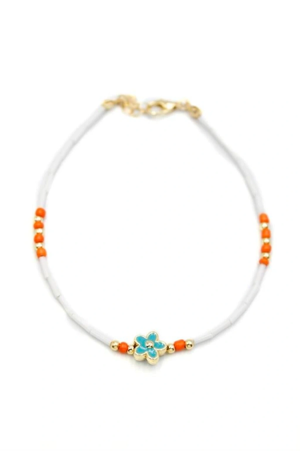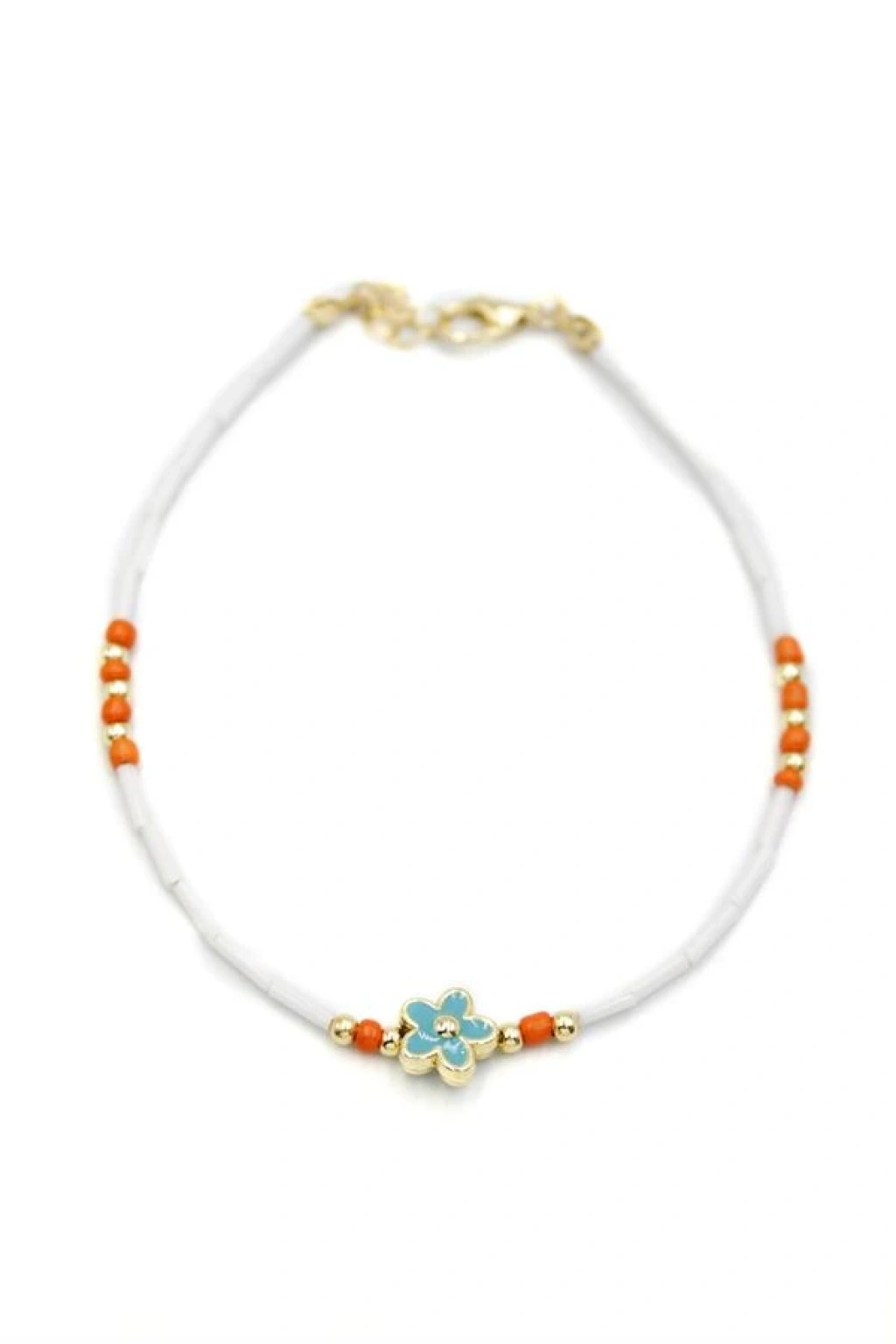 biçomi Boncuklu Çiçek Halhal - Mavi