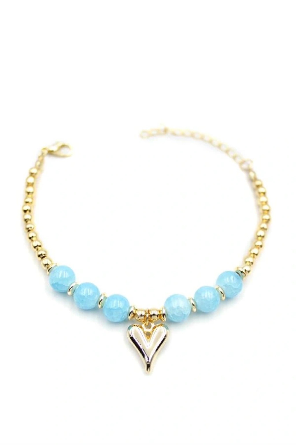 biçomi Boncuklu Kalp Bileklik - Mavi