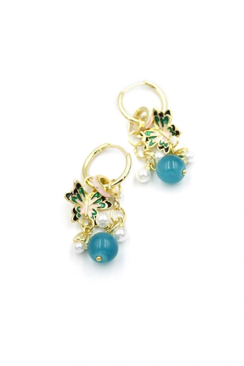biçomi Boncuklu Kelebek Küpe - Pembe
