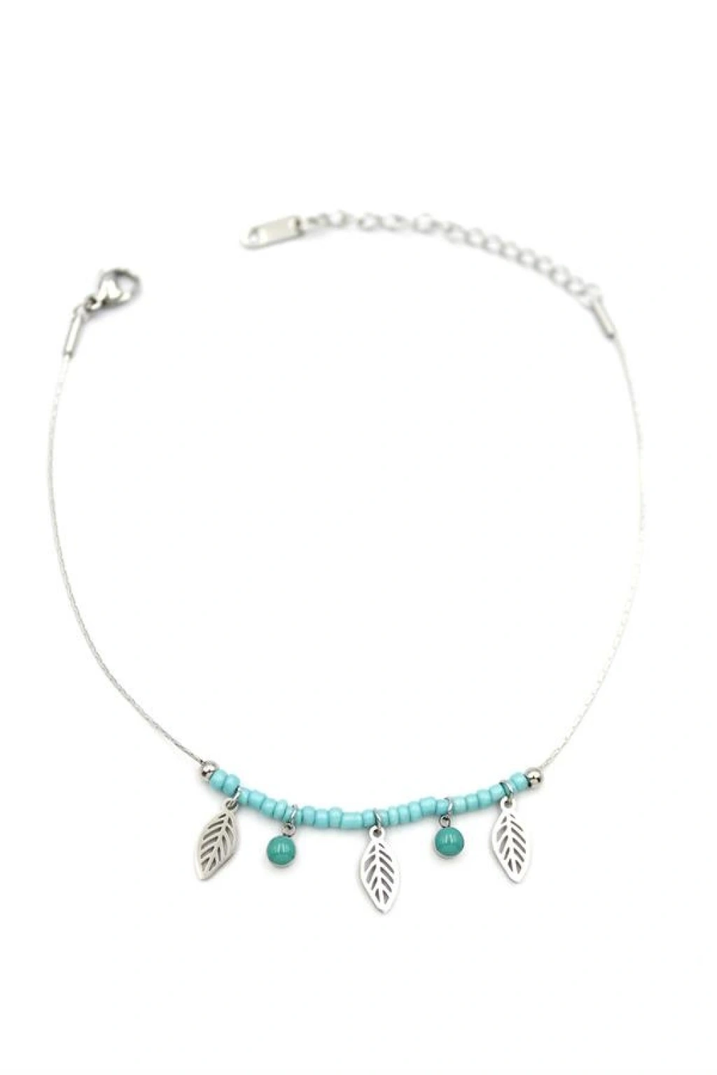 biçomi Boncuklu Yonca Halhal - Gümüş