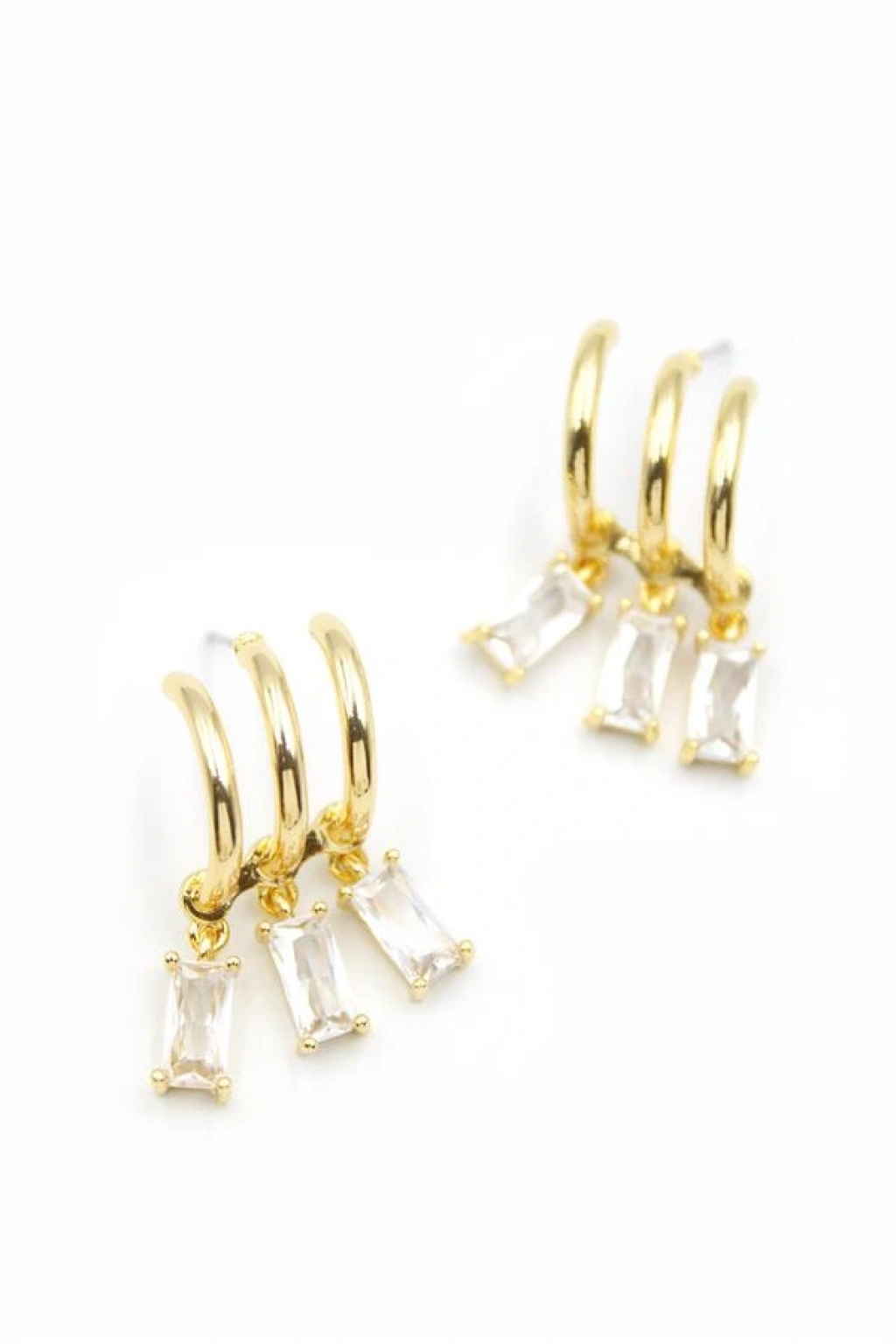 biçomi Büyük Baget Taşlı Küpe - Altın