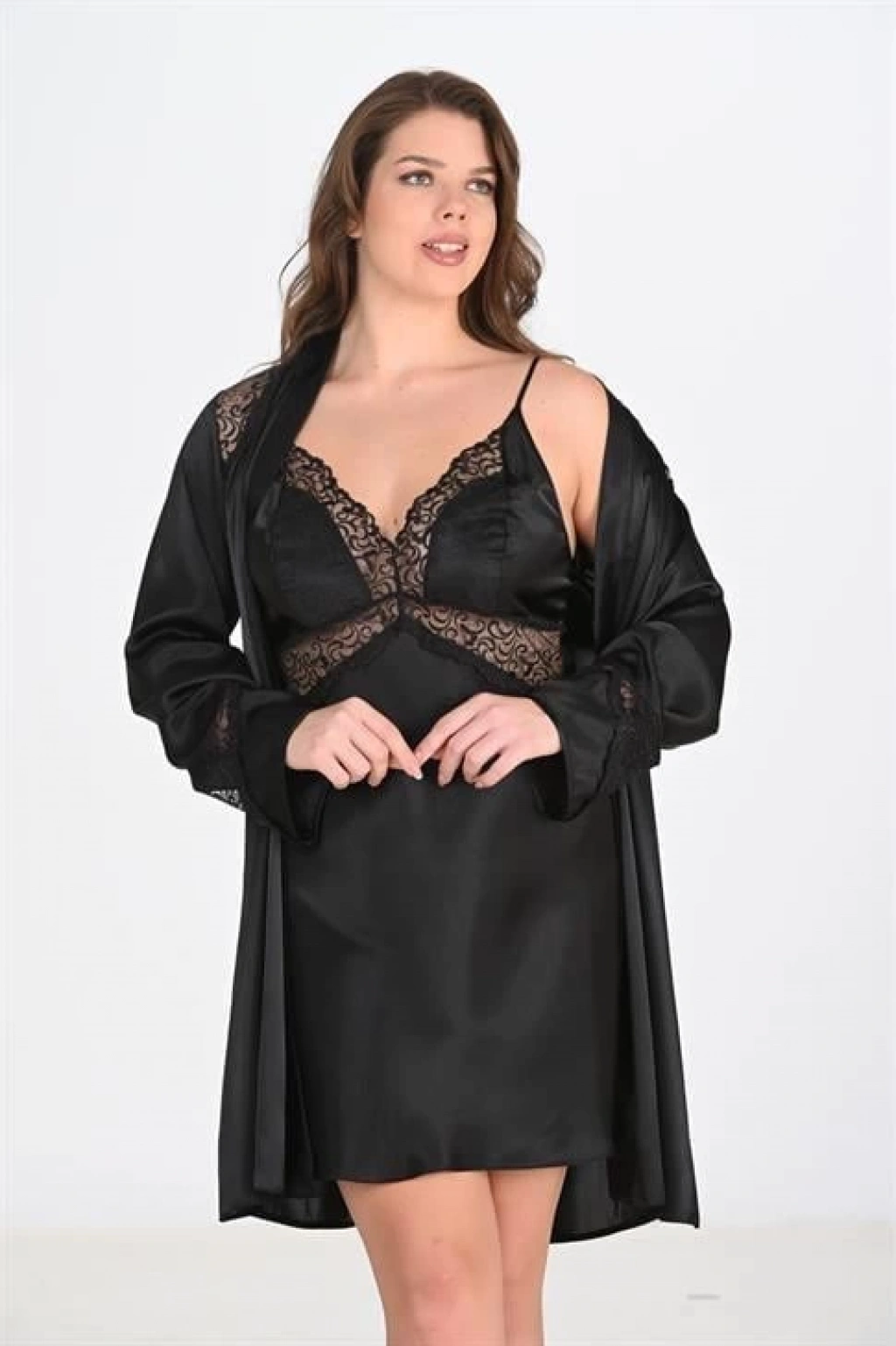 Bicomi Büyük Beden 2li Siyah Sabahlık Takımı Bigsize