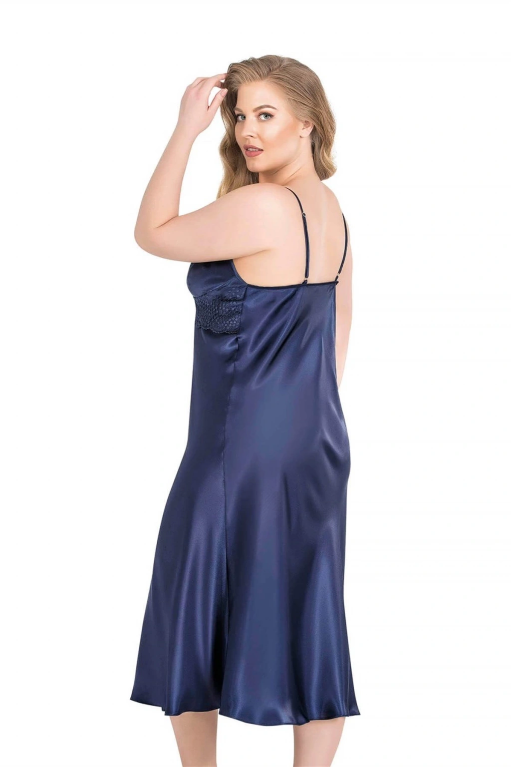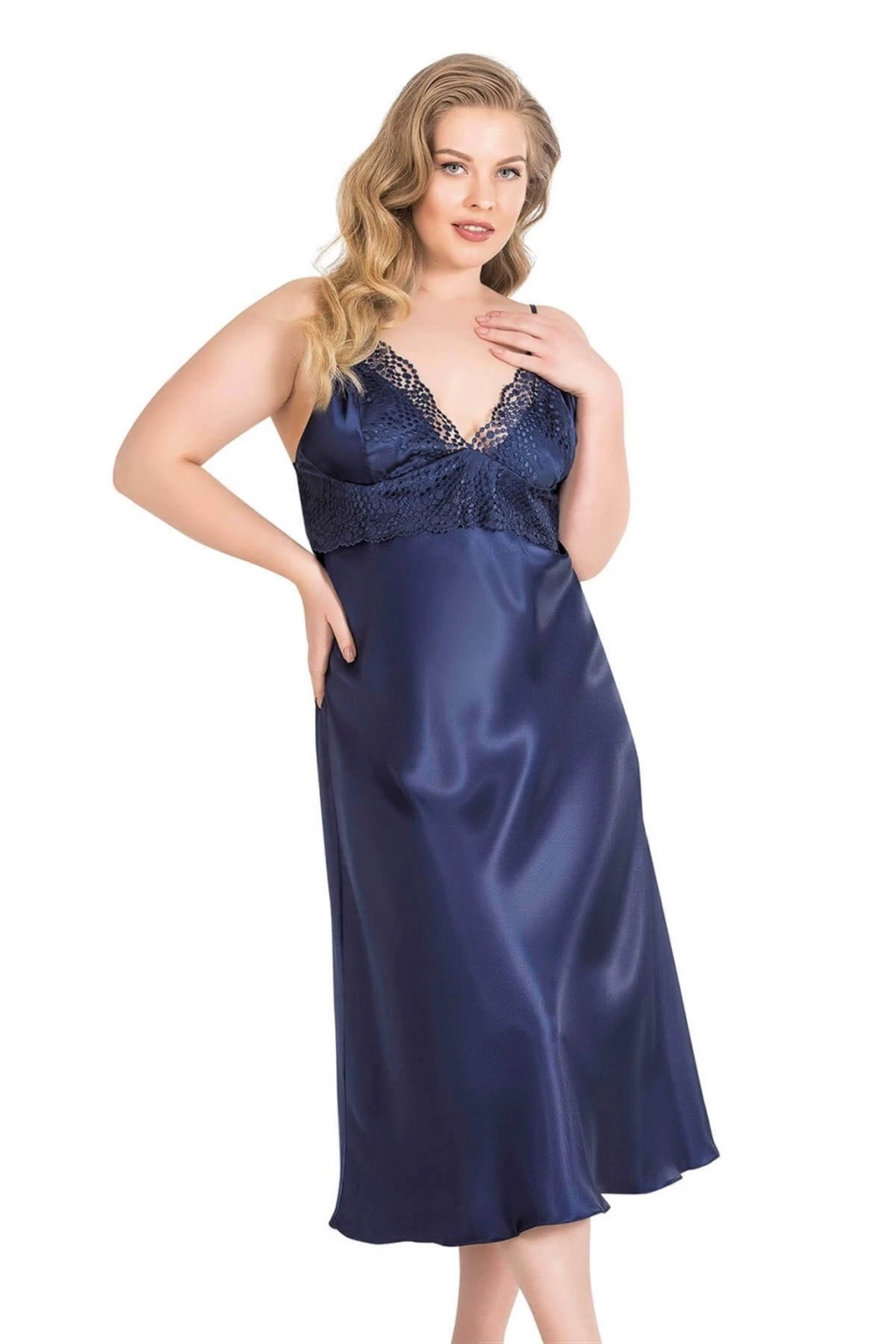 Bicomi Büyük Beden Lacivert Uzun İkili Saten Sabahlık Gecelik Takımı 6170