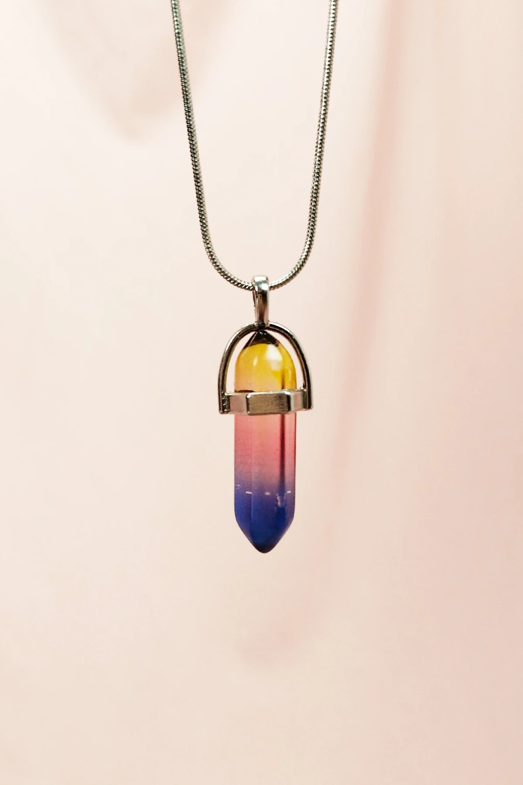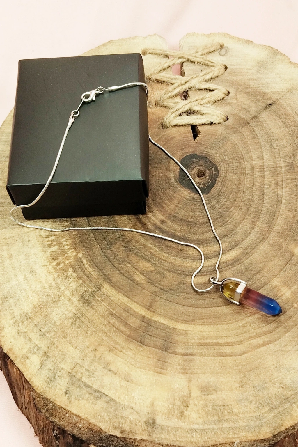 Çakra Doğal Taşı Zincirli El Yapımı Tasarımlı Kolye Uç: 3,5 cm Zincir: 20 cm Kutulu