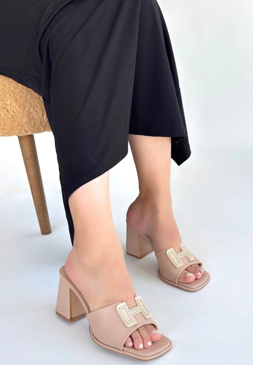 BİÇOMİ Caren Bej Cilt Topuklu Terlik