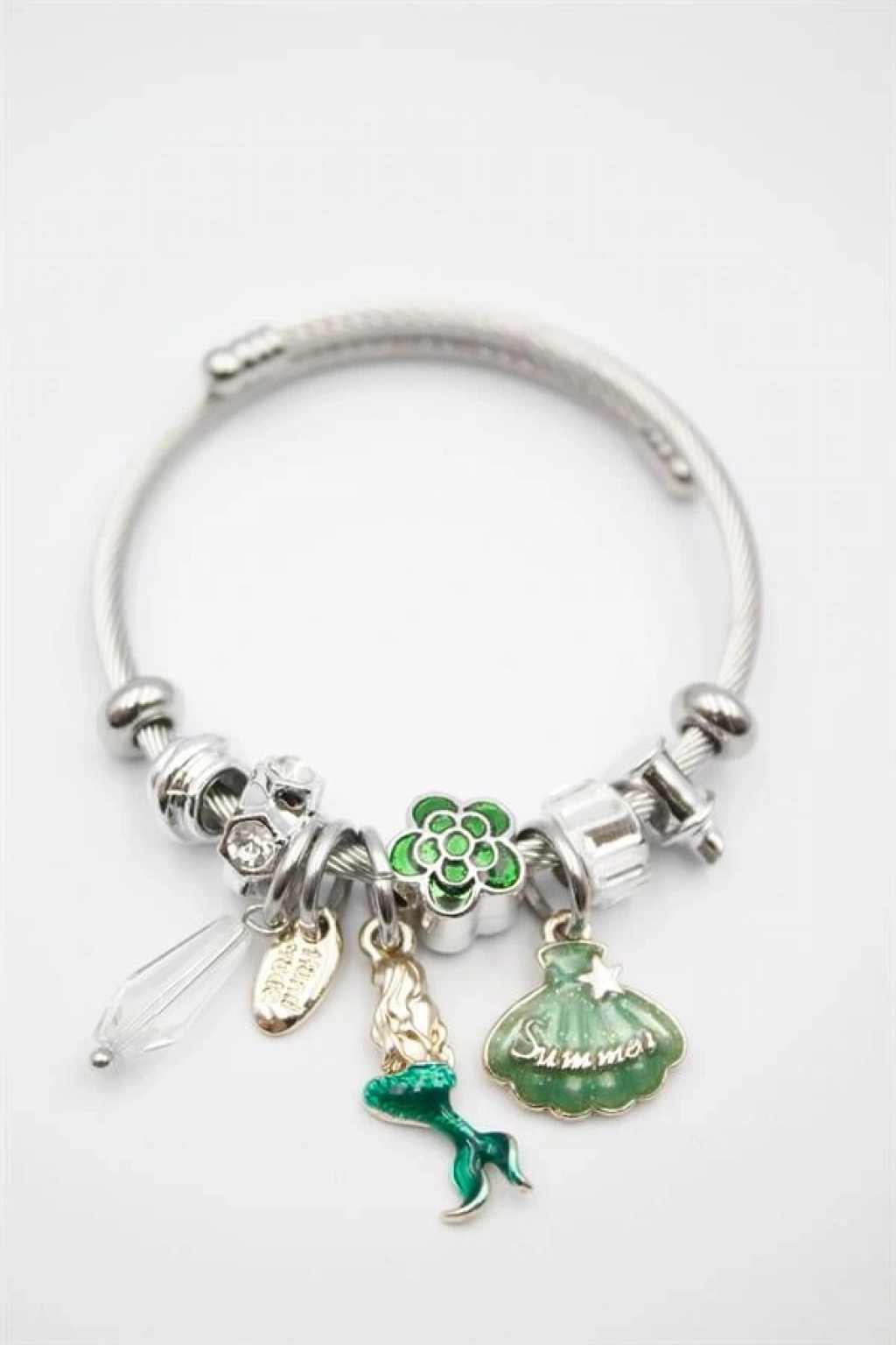 biçomi Çelik Charmlı Deniz Kızı Bileklik - Yeşil