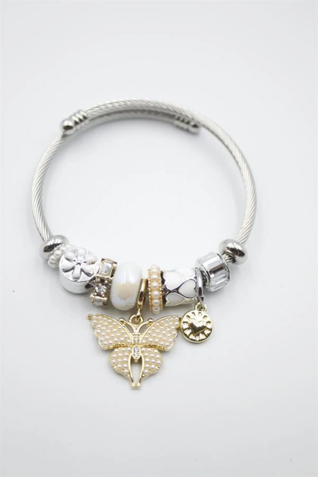 biçomi Çelik Charmlı Kelebek Bileklik - Beyaz