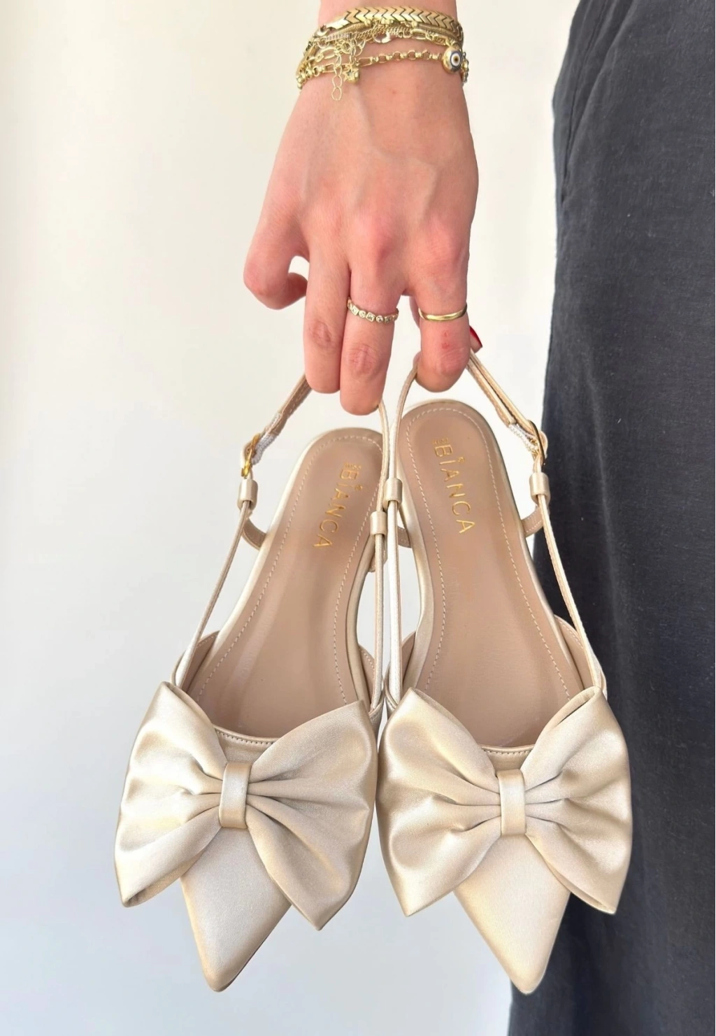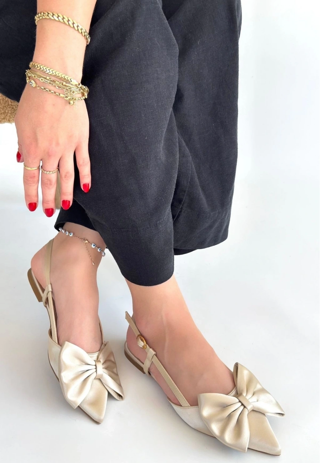 BİÇOMİ Cenya Bej Saten Babet Ayakkabı
