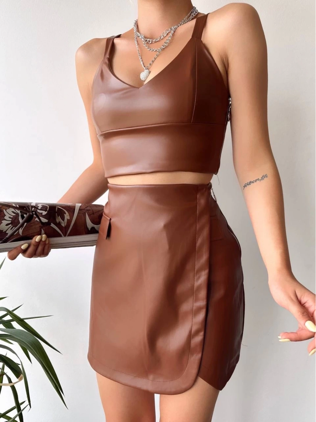 Şıklığı ve rahatlığı bir arada sunan Cep Detaylı Oval Kapaklı Deri Etek ile tarzınızı tamamlayabilirsiniz.