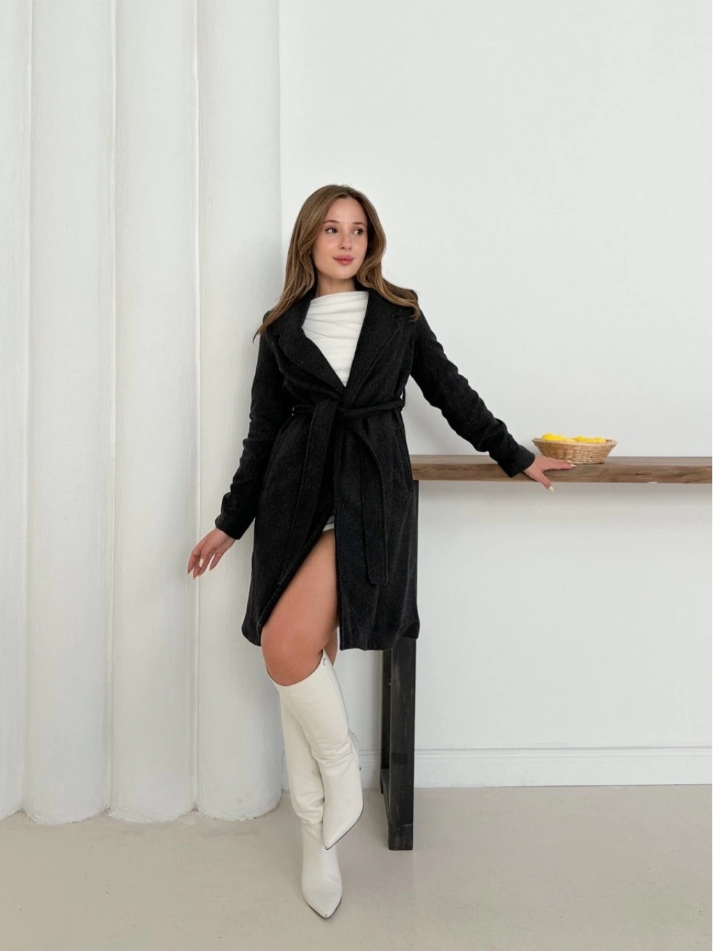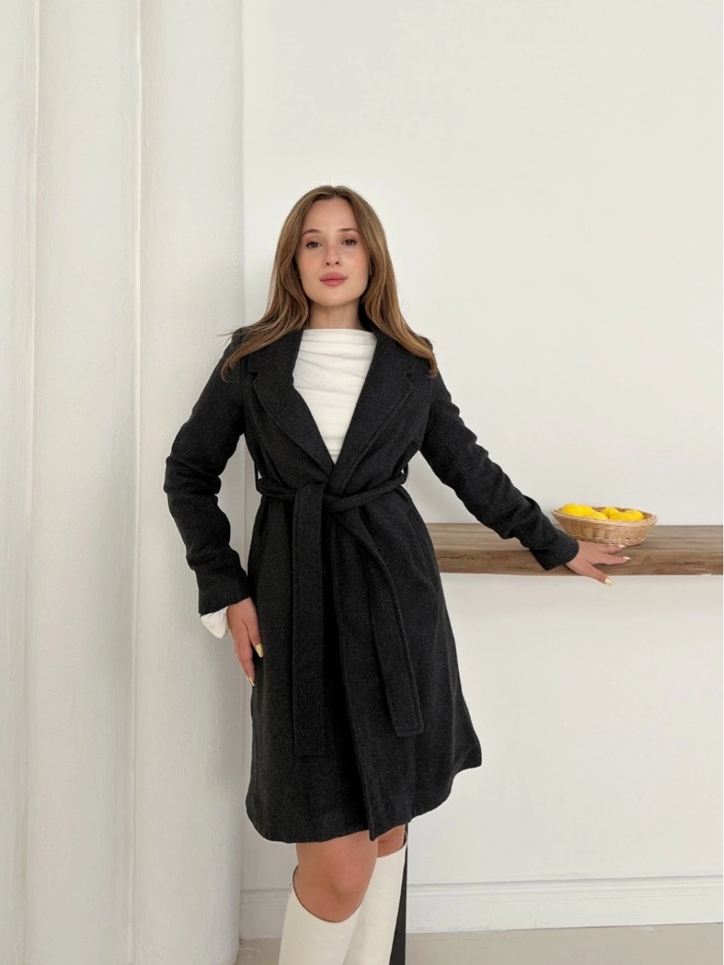 Kaliteli işçilik ve şık görünümü ile her mevsim gardırobunuzda önemli bir yere sahip olacak Cepli Kuşaklı Kaşe Kaban Antrasit ST26458'i hemen sepetinize ekleyin!