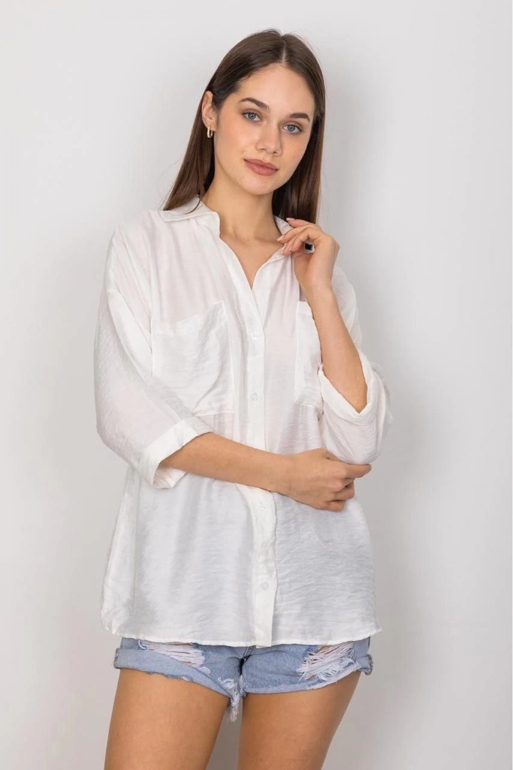 Şıklığı seven kadınların gardırobunda mutlaka bulunması gereken bir parçadır. T1010 Cepli Salaş Gömlek ile hem günlük hayatta hem de özel günlerde şık ve rahat bir görünüme sahip olabilirsiniz.