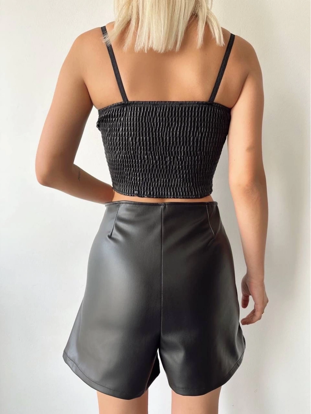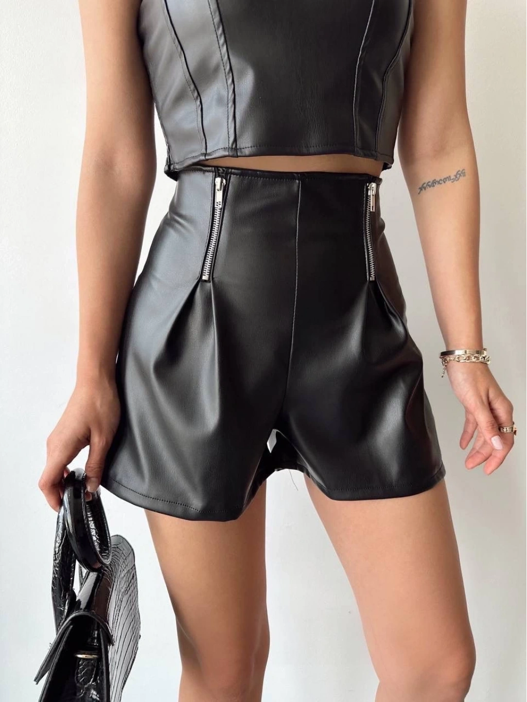 Çift fermuarlı deri şort h24394, günlük hayatta şıklığı ve konforu bir arada arayan kadınların favorisi olmaya aday!