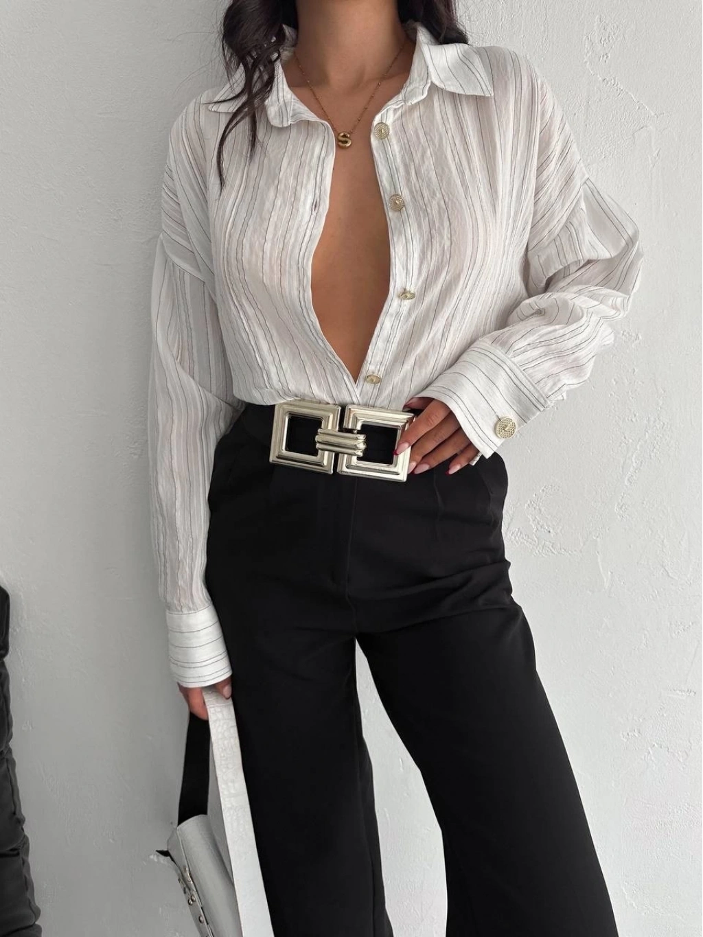 BİÇOMİ Çizgili oversize gömlek
