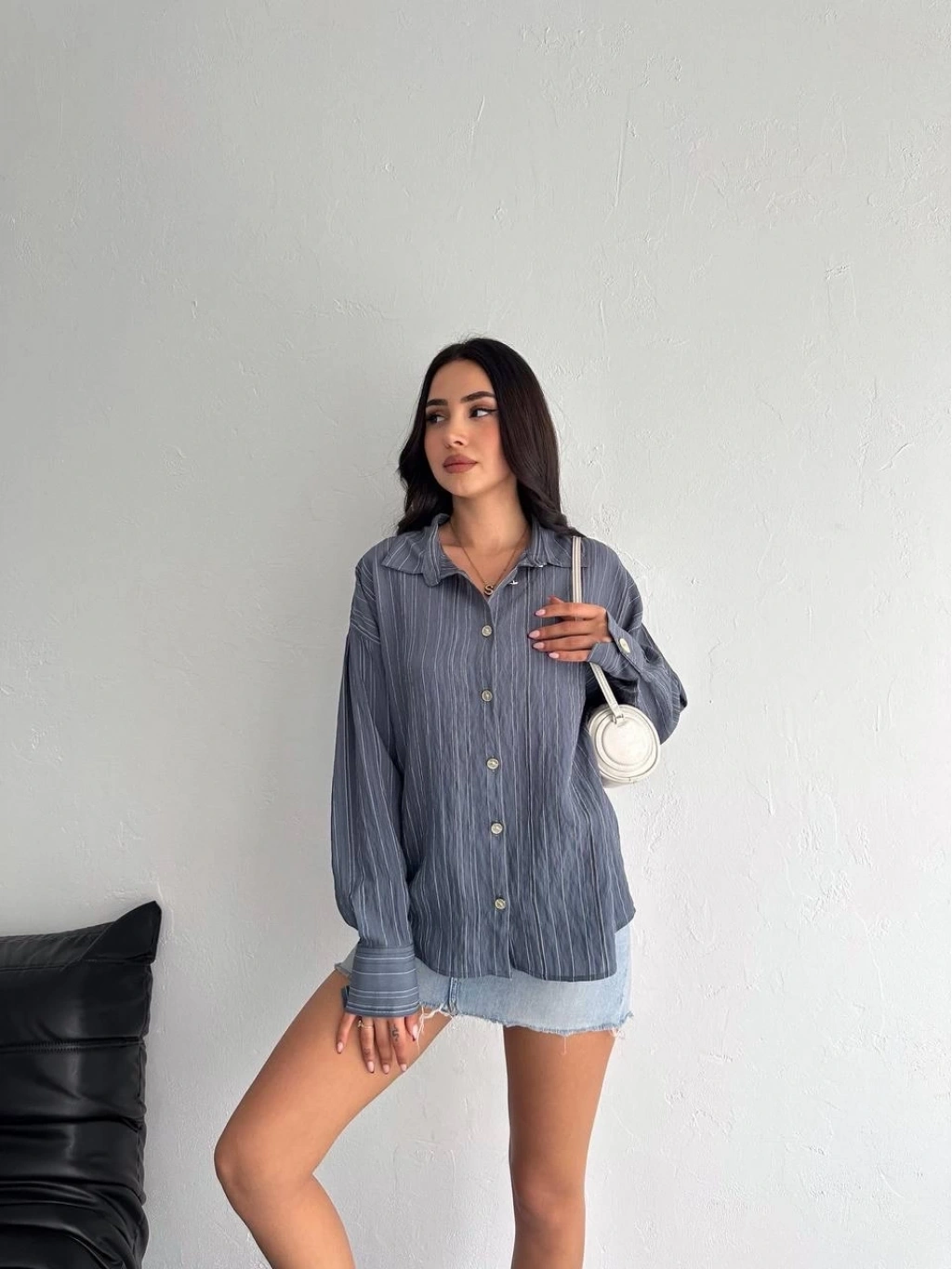 KAZAX çizgili oversize gömlek ile hem şık hem de rahat bir görünüm elde edebilirsiniz.