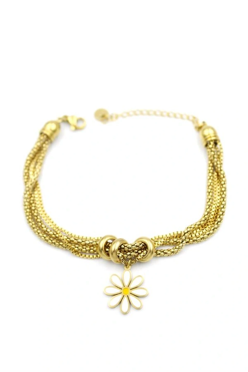 biçomi Çoklu Zincirli Papatya Bileklik - Altın