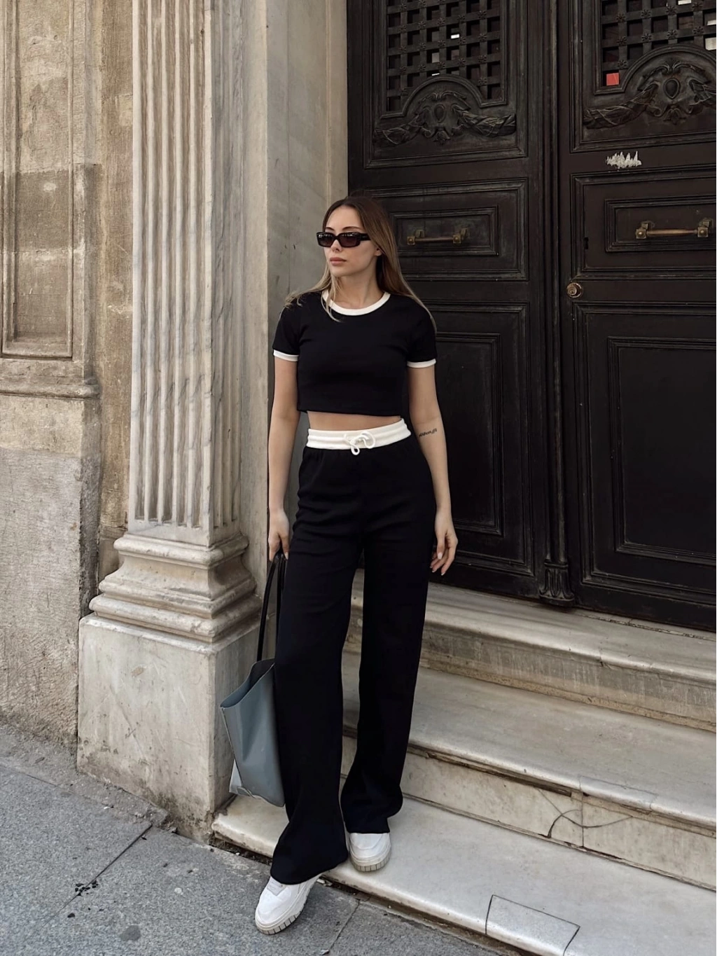 - Yüksek bel crop pantolonu ile şık bir görünüm elde edin.