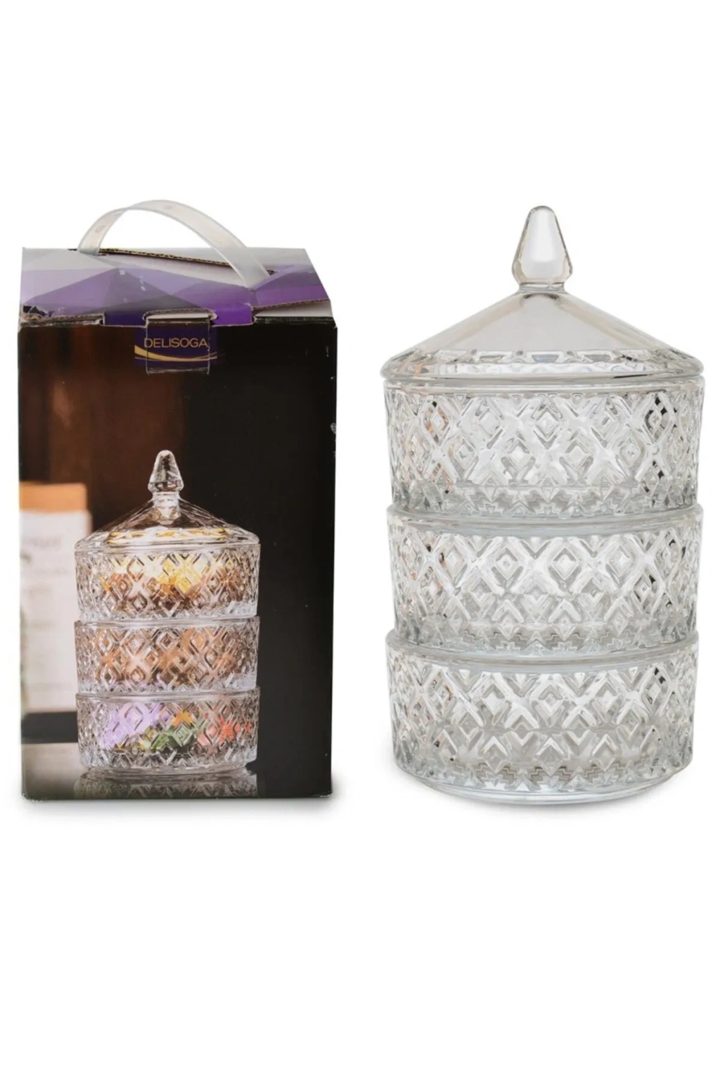 Delisoga 3 Katlı Cam Kurabiyelik Biçomi-PAK-417 6933890370387 Paket İçeriği : 1 Adet