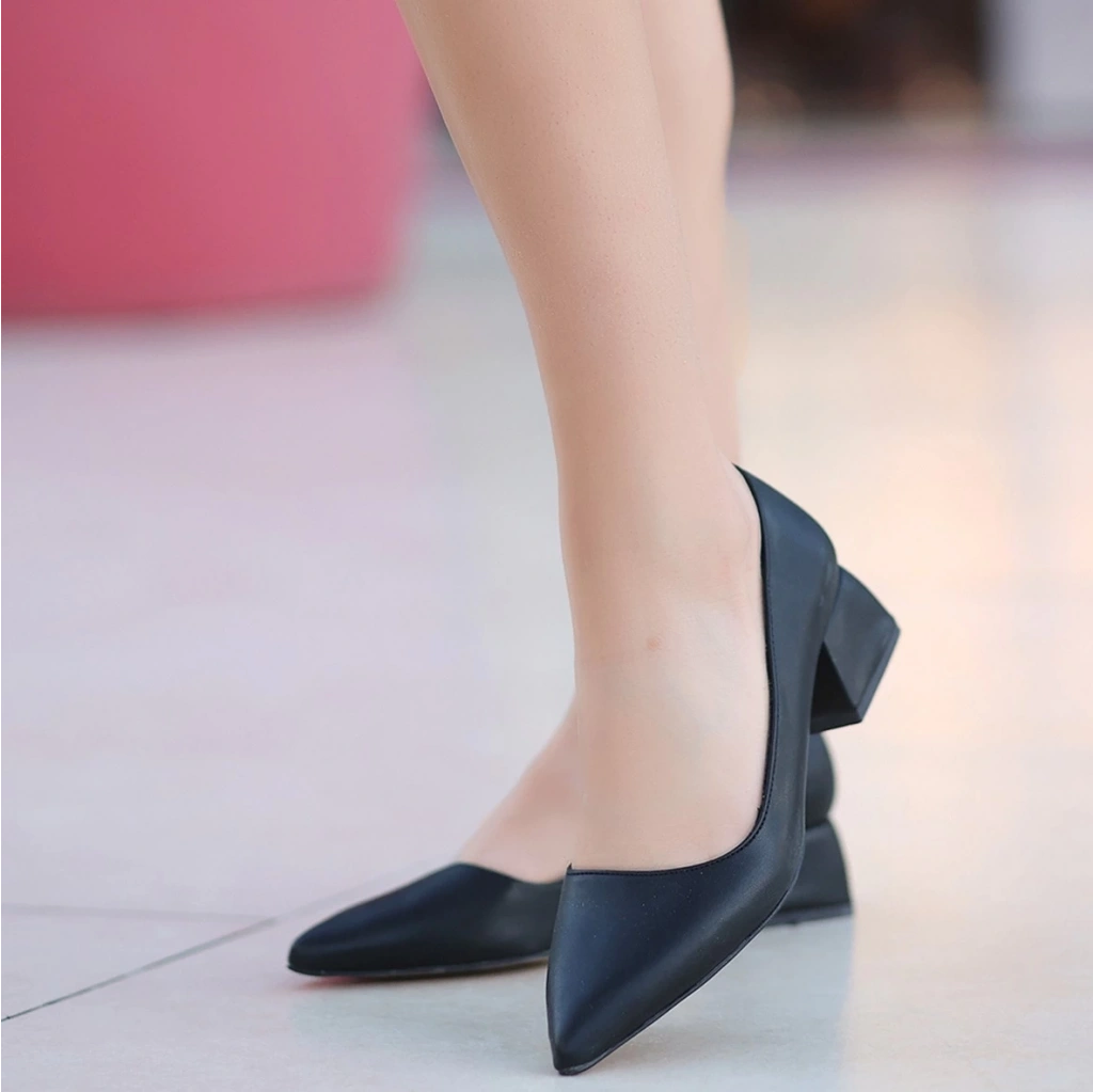 BİÇOMİ Desniy Siyah Cilt Topuklu Ayakkabı