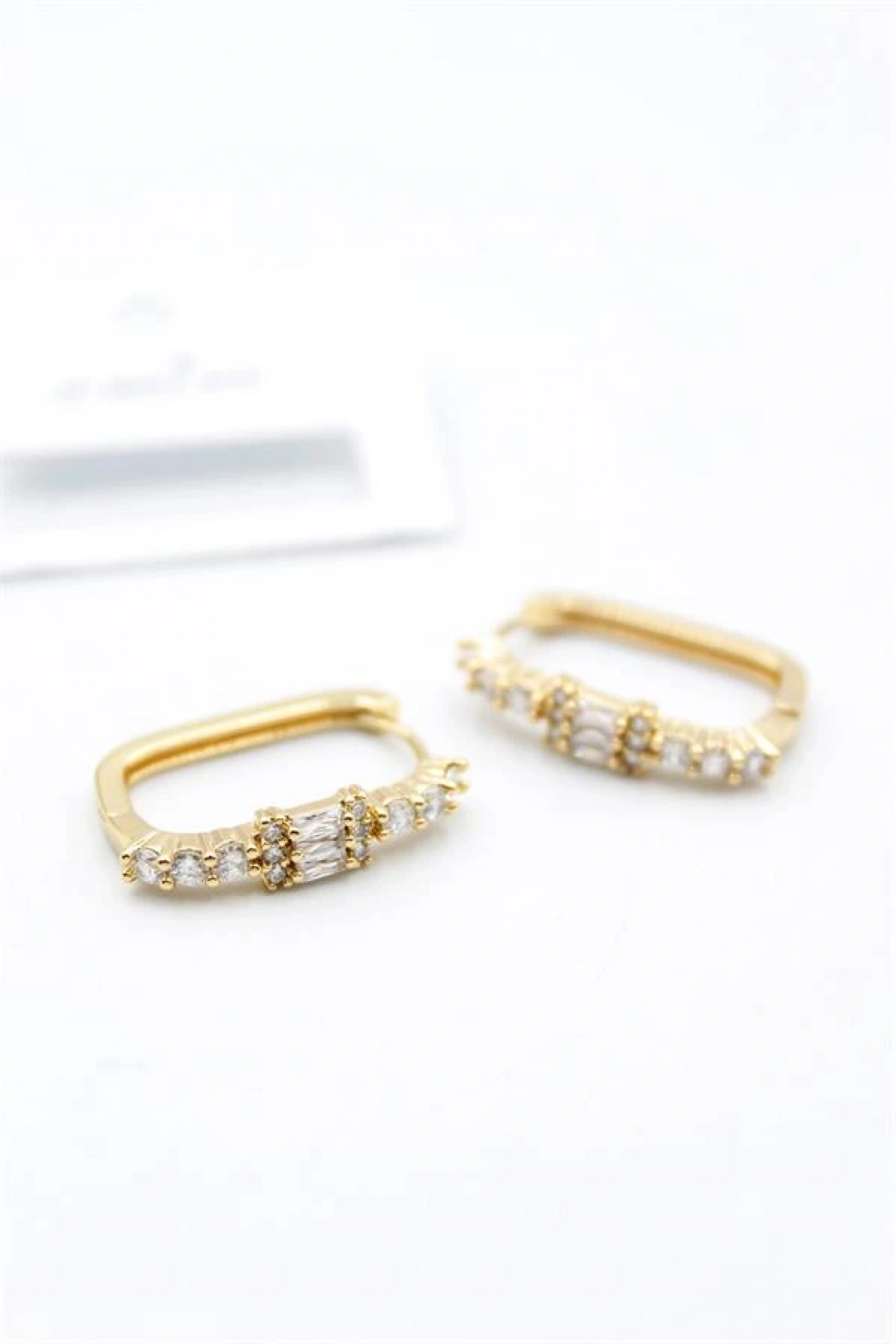 biçomi Dikdörgen Taşlı Küpe - Altın