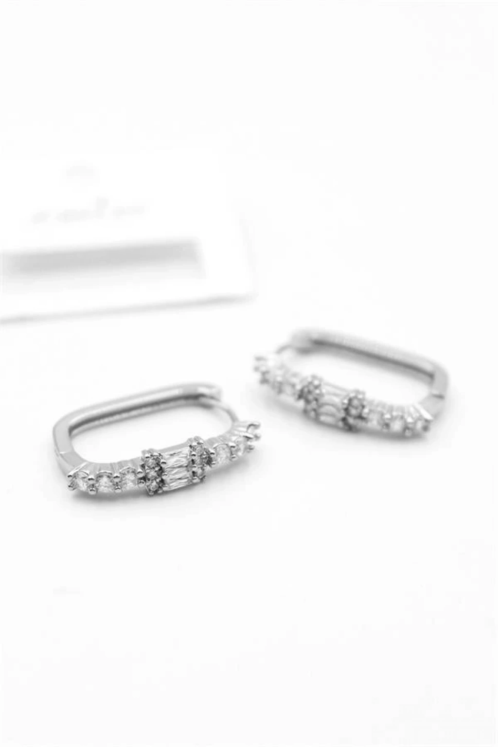 biçomi Dikdörgen Taşlı Küpe - Gümüş