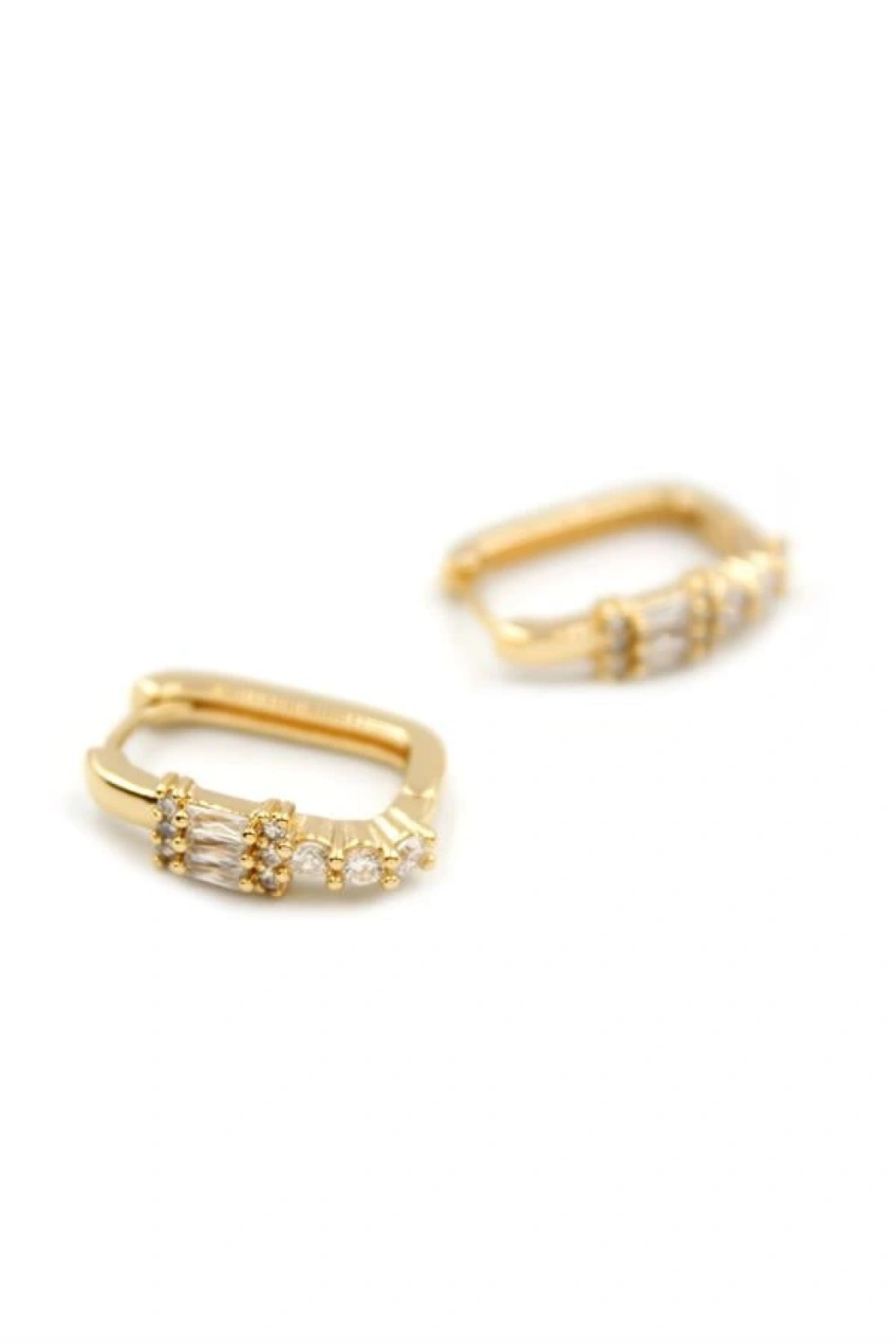 biçomi Dikdörtgen Taşlı Küpe - Altın