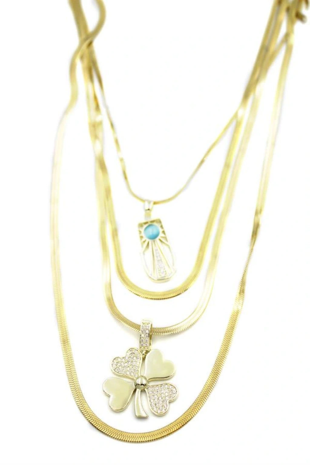 biçomi Dört Zincirli Kolye-80cm - Altın