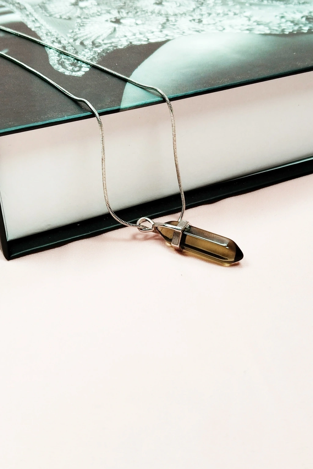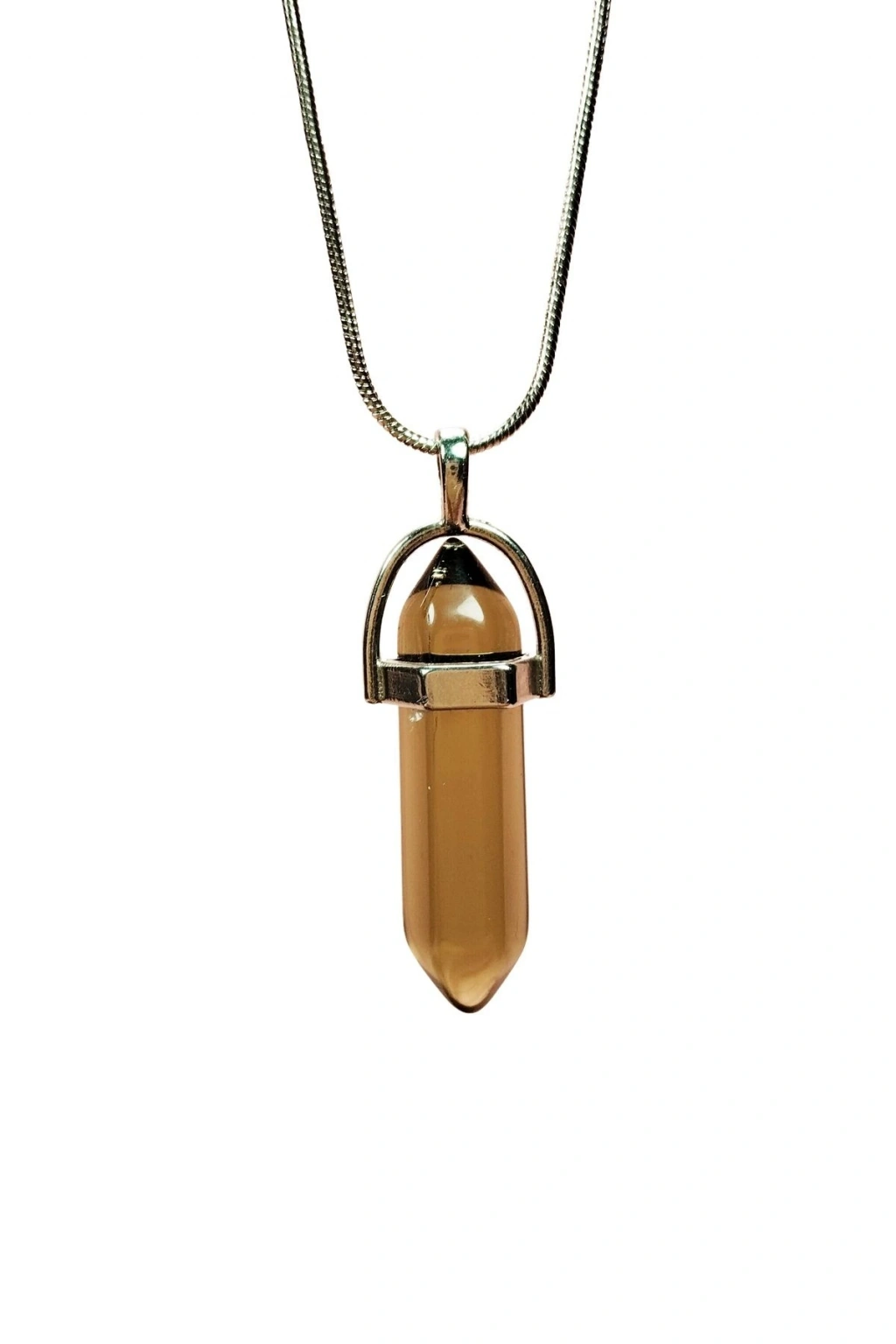 biçomi Dumanlı Kuvars Doğal Taşı Zincirli El Yapımı Kolye Uç: 3 cm Zincir: 20 cm Kutulu