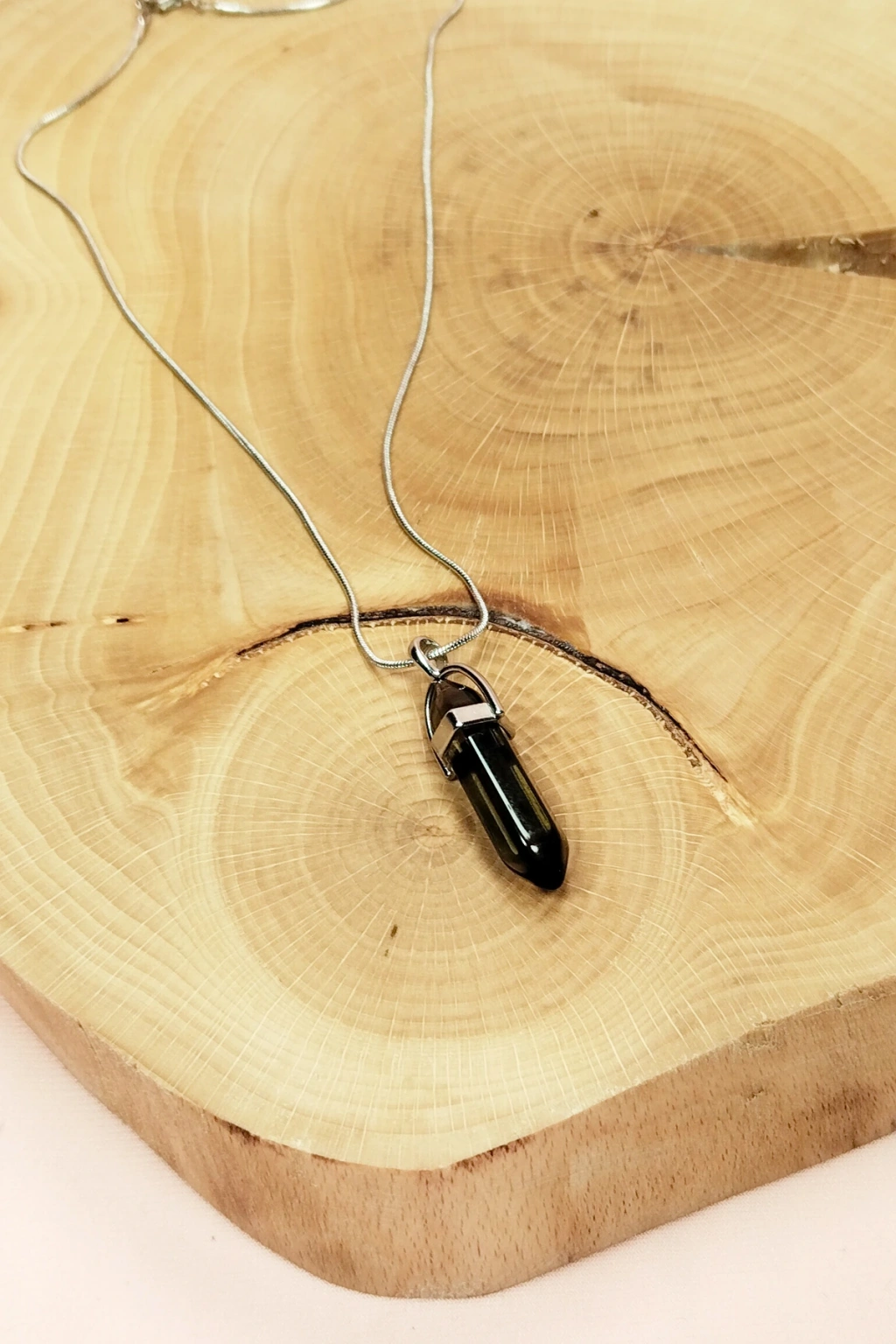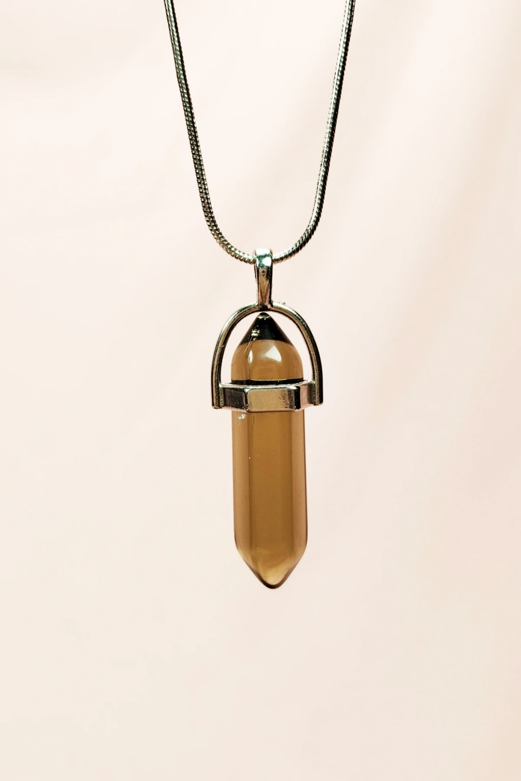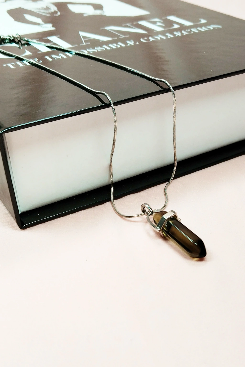 Dumanlı Kuvars Doğal Taşı Zincirli El Yapımı Kolye Uç: 3 cm Zincir: 20 cm Kutulu