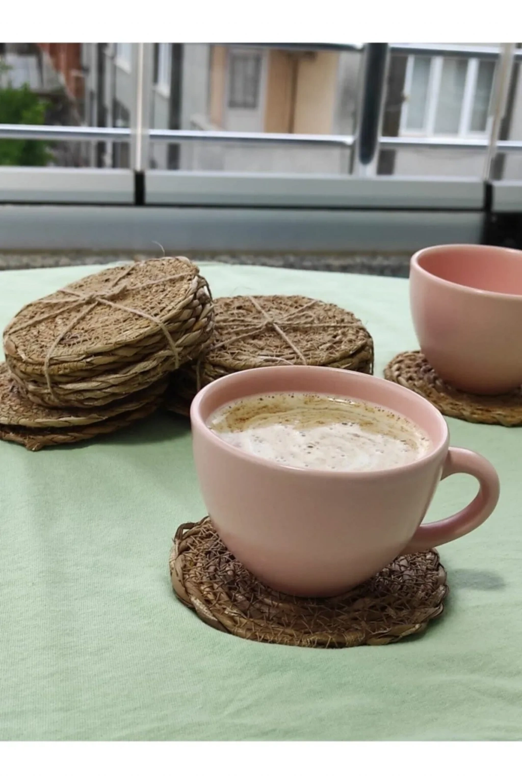 El Yapımı Hasır Bardak Altlığı Fincan Çay Kupa Altlığı Hasır Bardak Altlığı 6 Adet Biçomi-BLSSGS10 8682841000573