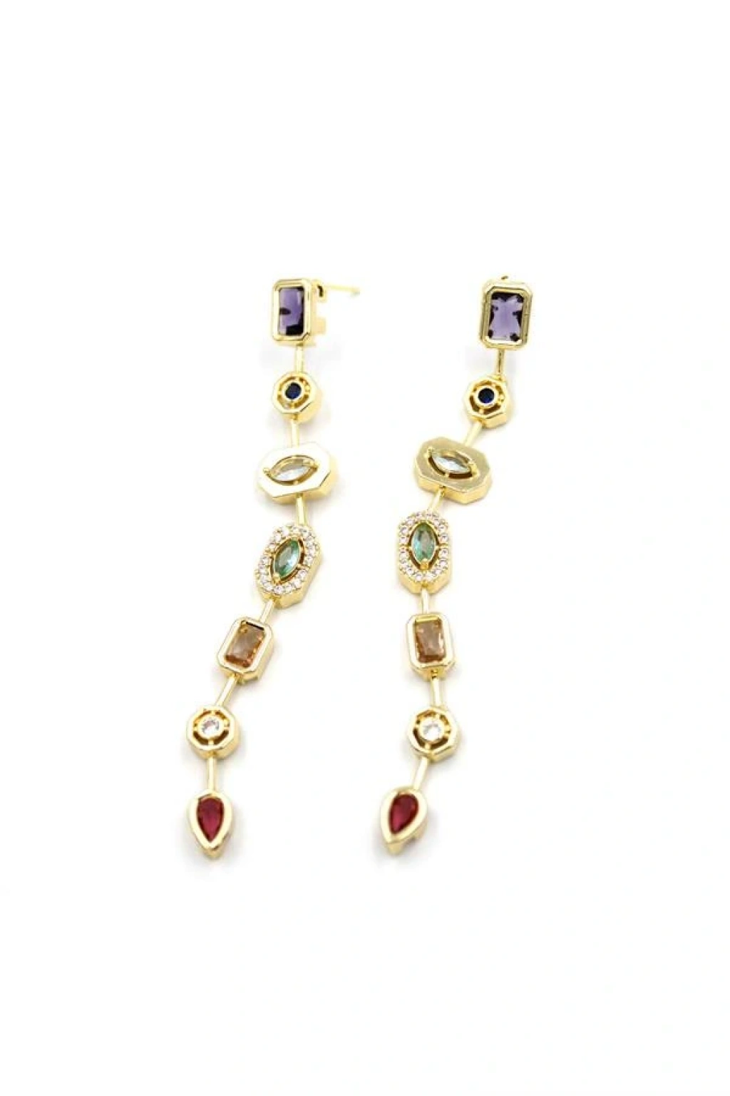 biçomi Sallantılı Taşlı Küpe - Bordo
