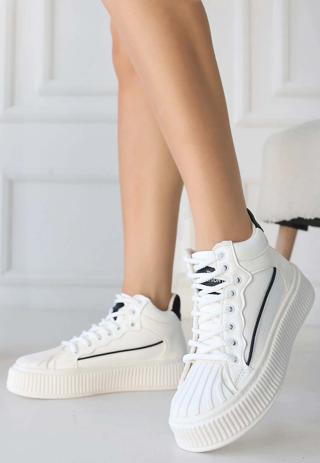 BİÇOMİ Estim Beyaz Cilt Siyah Detaylı Bağcıklı Spor Ayakkabı