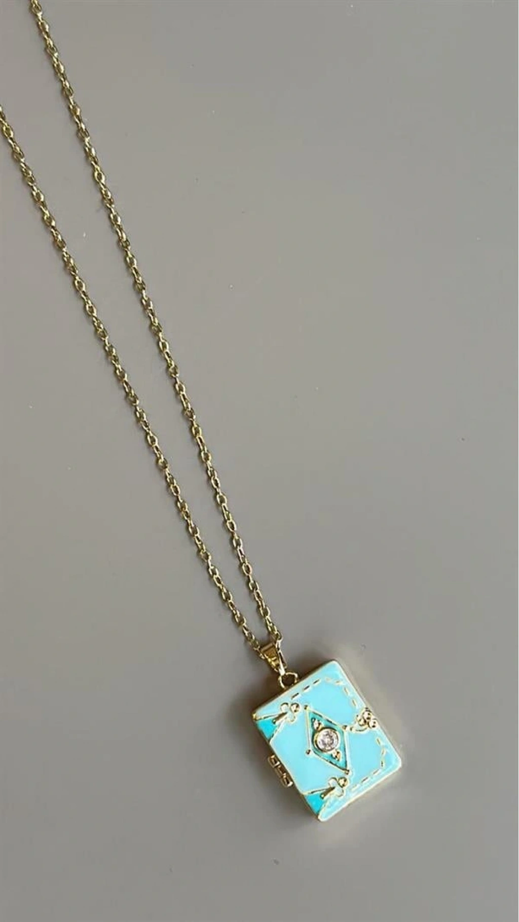 biçomi Etnik Desen Kapaklı Kolye - Mavi