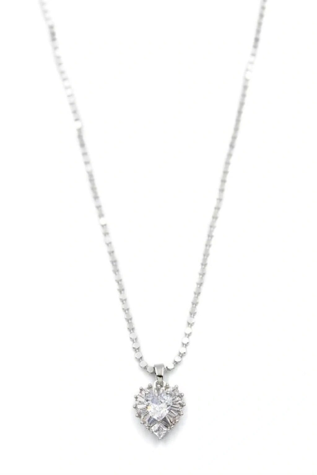 biçomi Ezme Zincir Taşlı Kolye - Gümüş