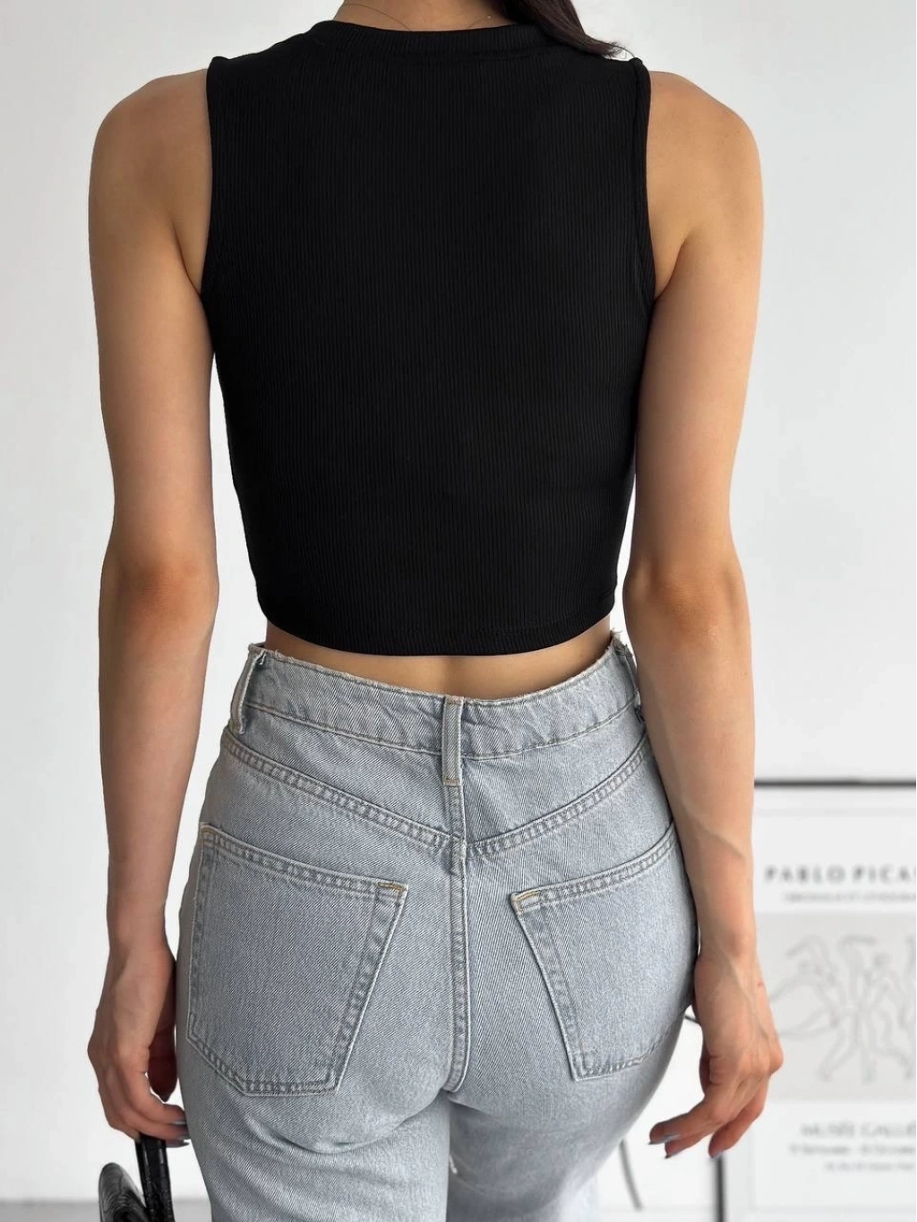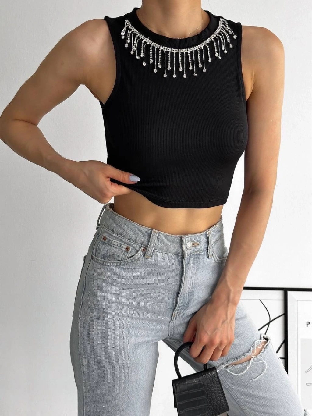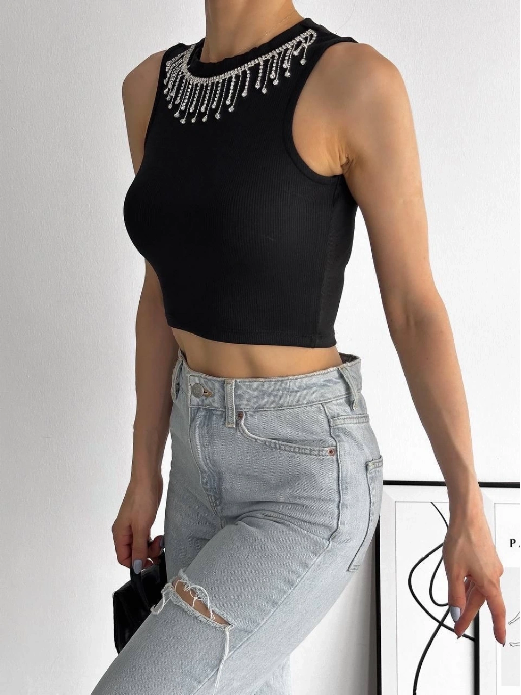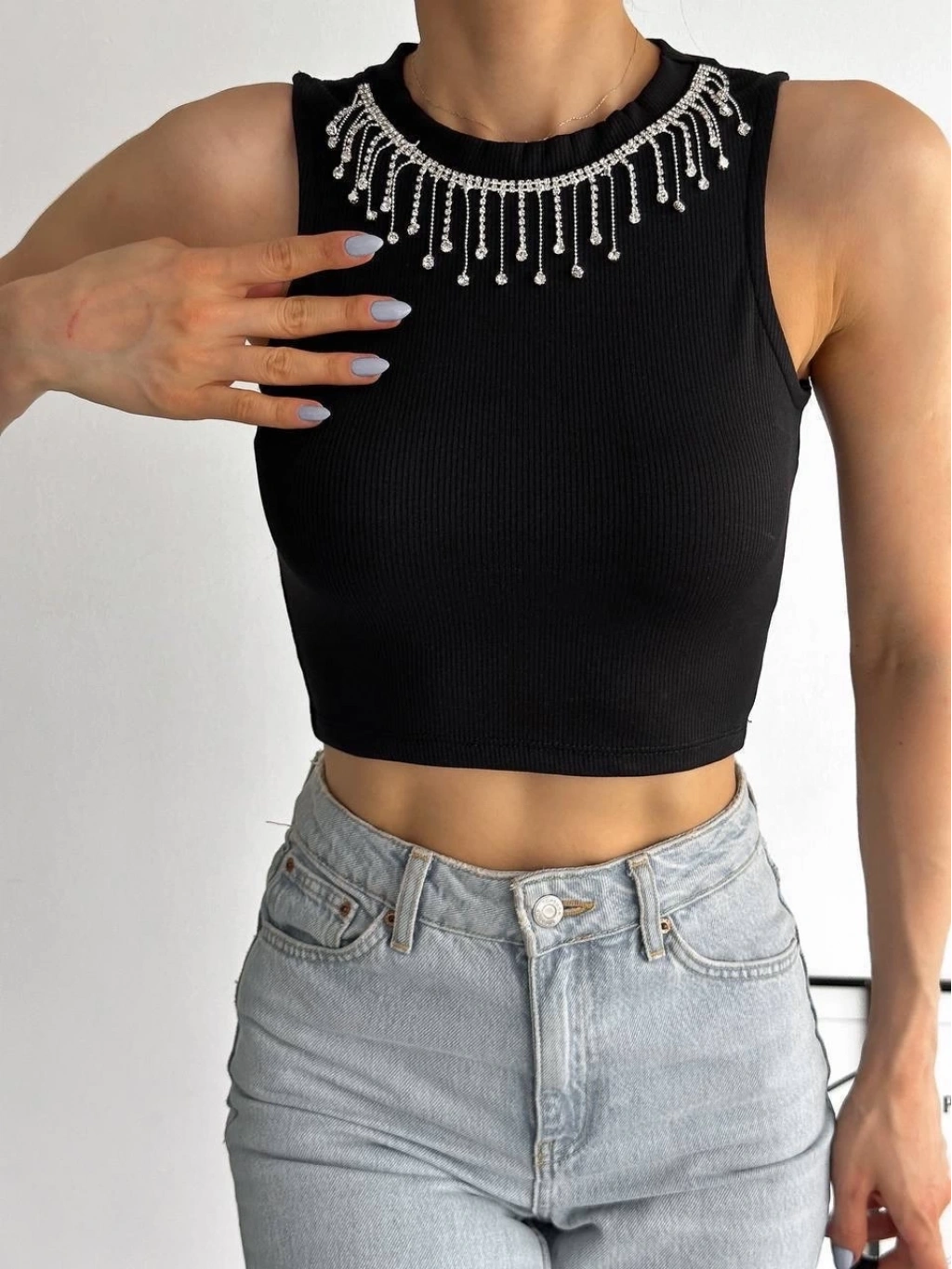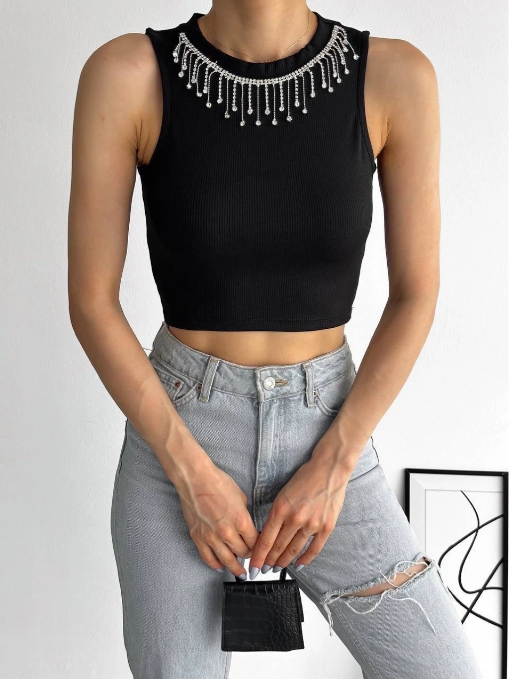 BİÇOMİ fitilli kaşkorse yakası zincirli atlet siyah