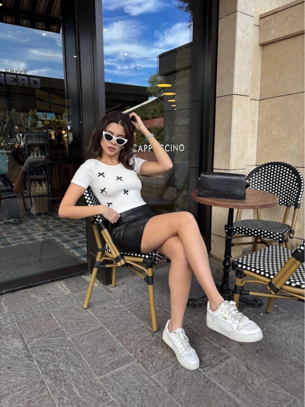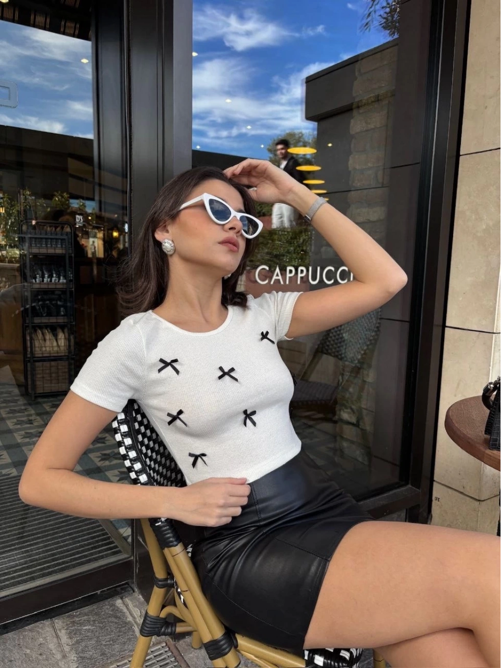 Bağcıklı fiyonk detayıyla feminen bir görünüm kazandırır.