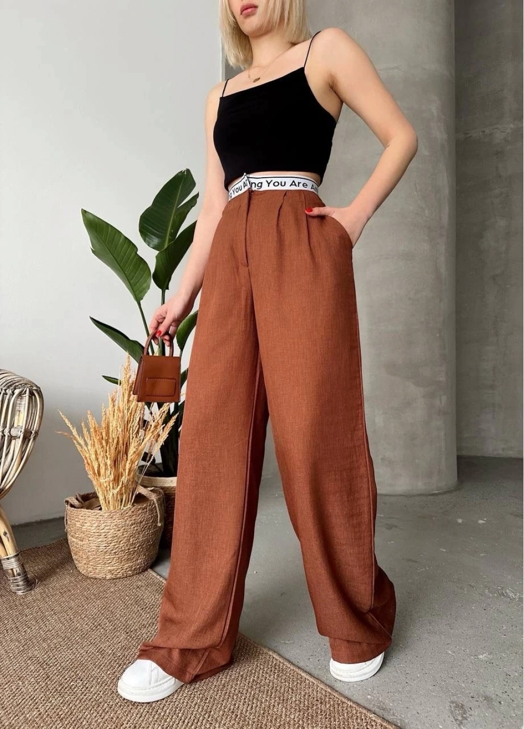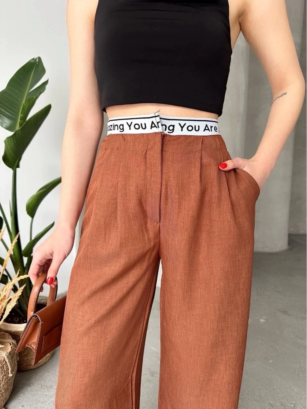 Flamlı kahve pantolon, şıklığı ve rahatlığı bir arada sunan bir seçenektir. Bu şık pantolon ile günlük hayatta veya özel davetlerde tarzınızı konuşturabilirsiniz.