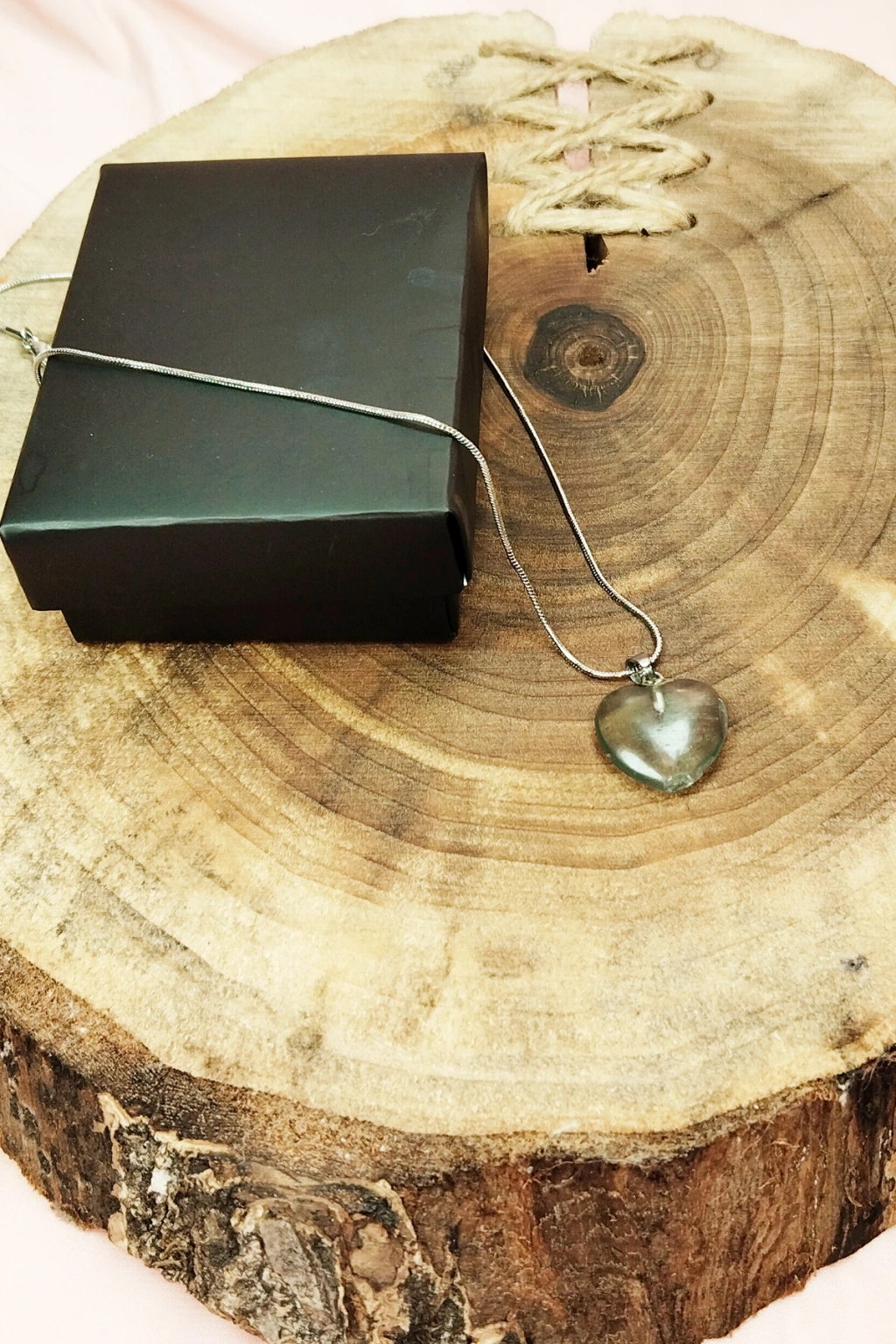 biçomi Labradorit Doğal Taşı Zincirli El Yapımı Kolye Uç: 2 cm Zincir: 20 cm Kutulu