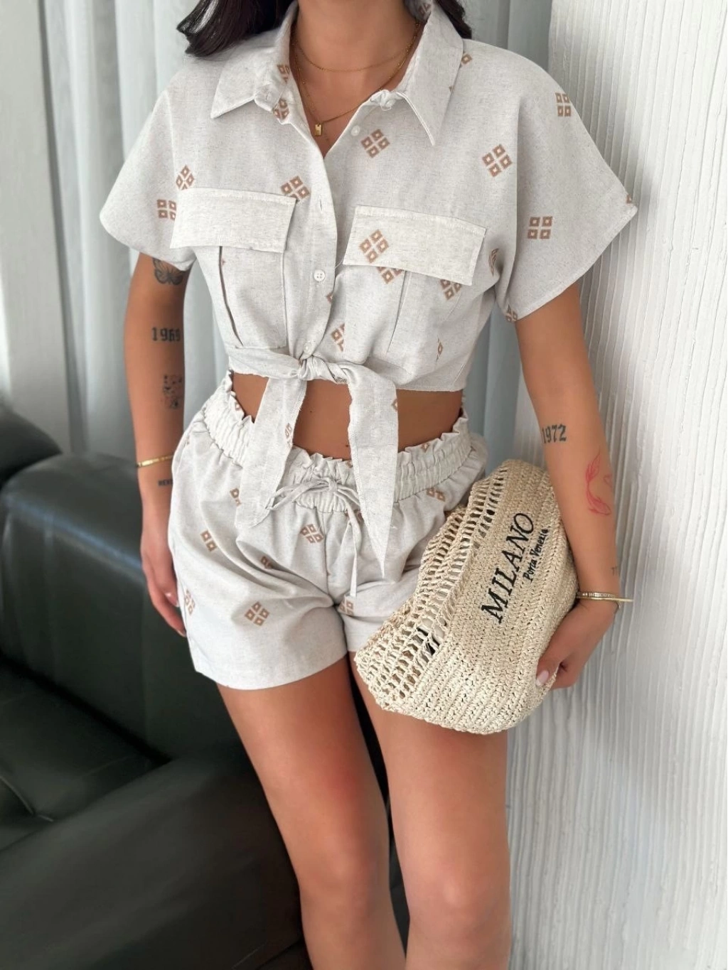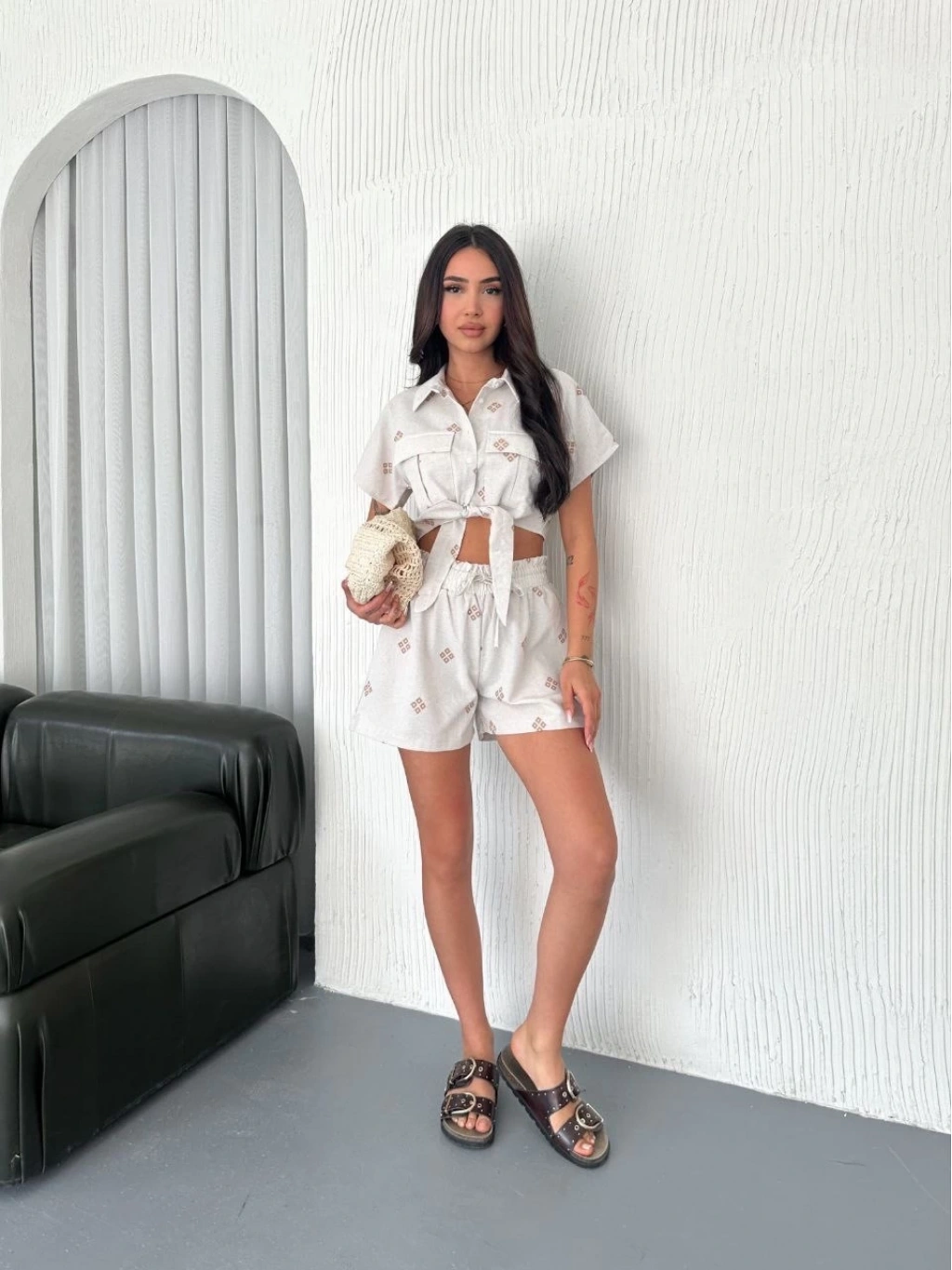 BİÇOMİ Gömlek şort keten takım s1052-1056
