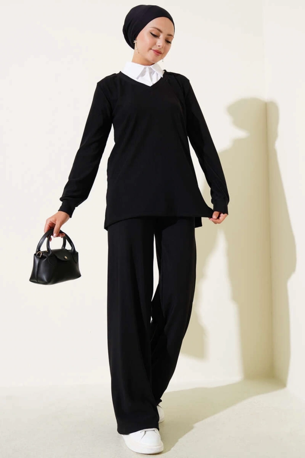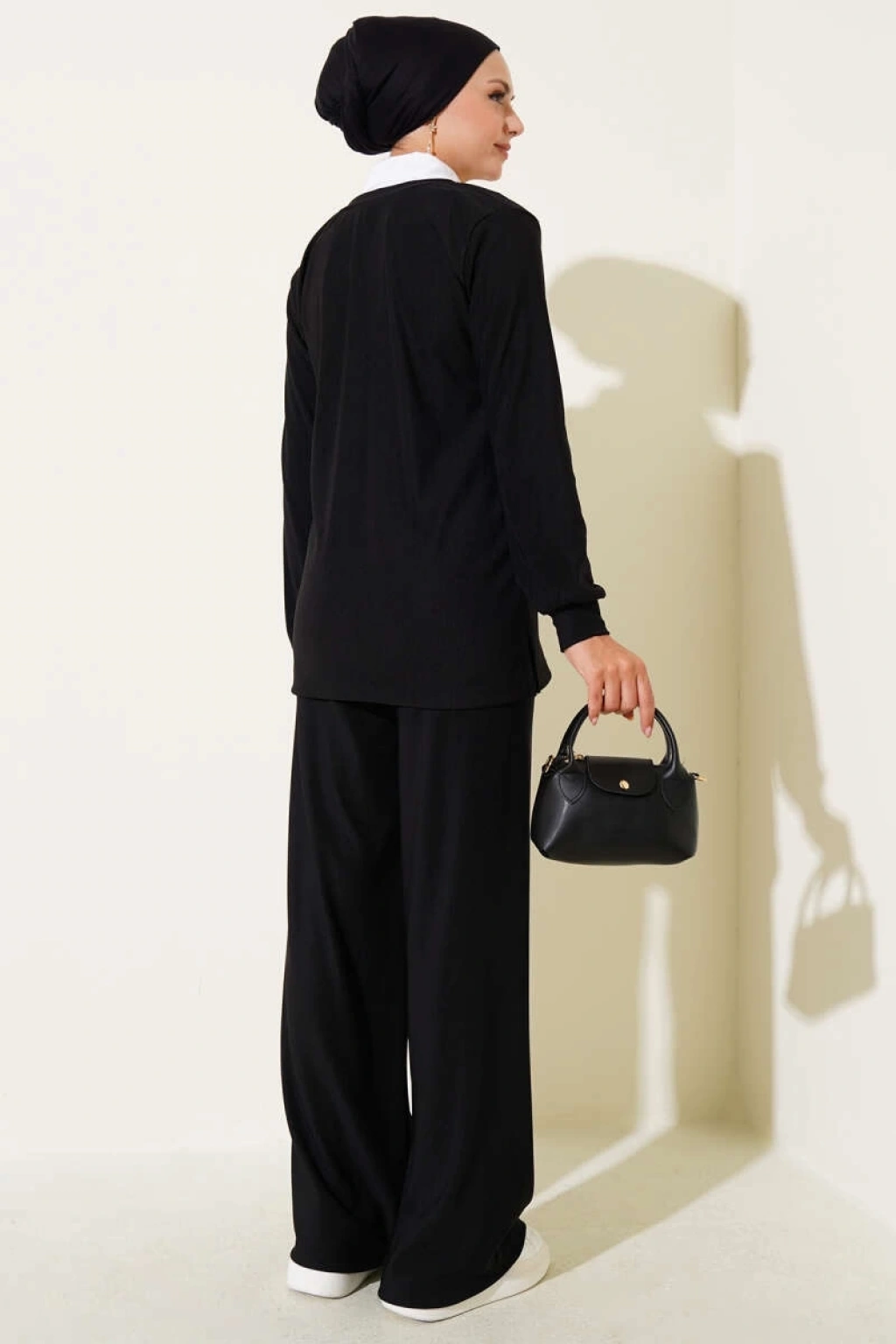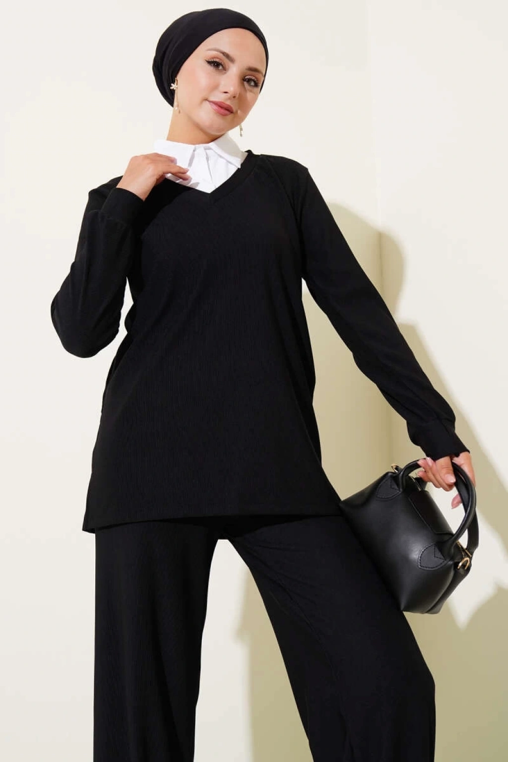 BİÇOMİ Gömlek Yaka Fitilli Salaş İkili Takım siyah T4300