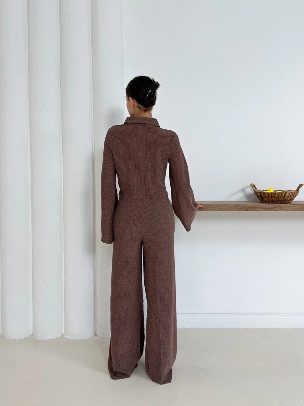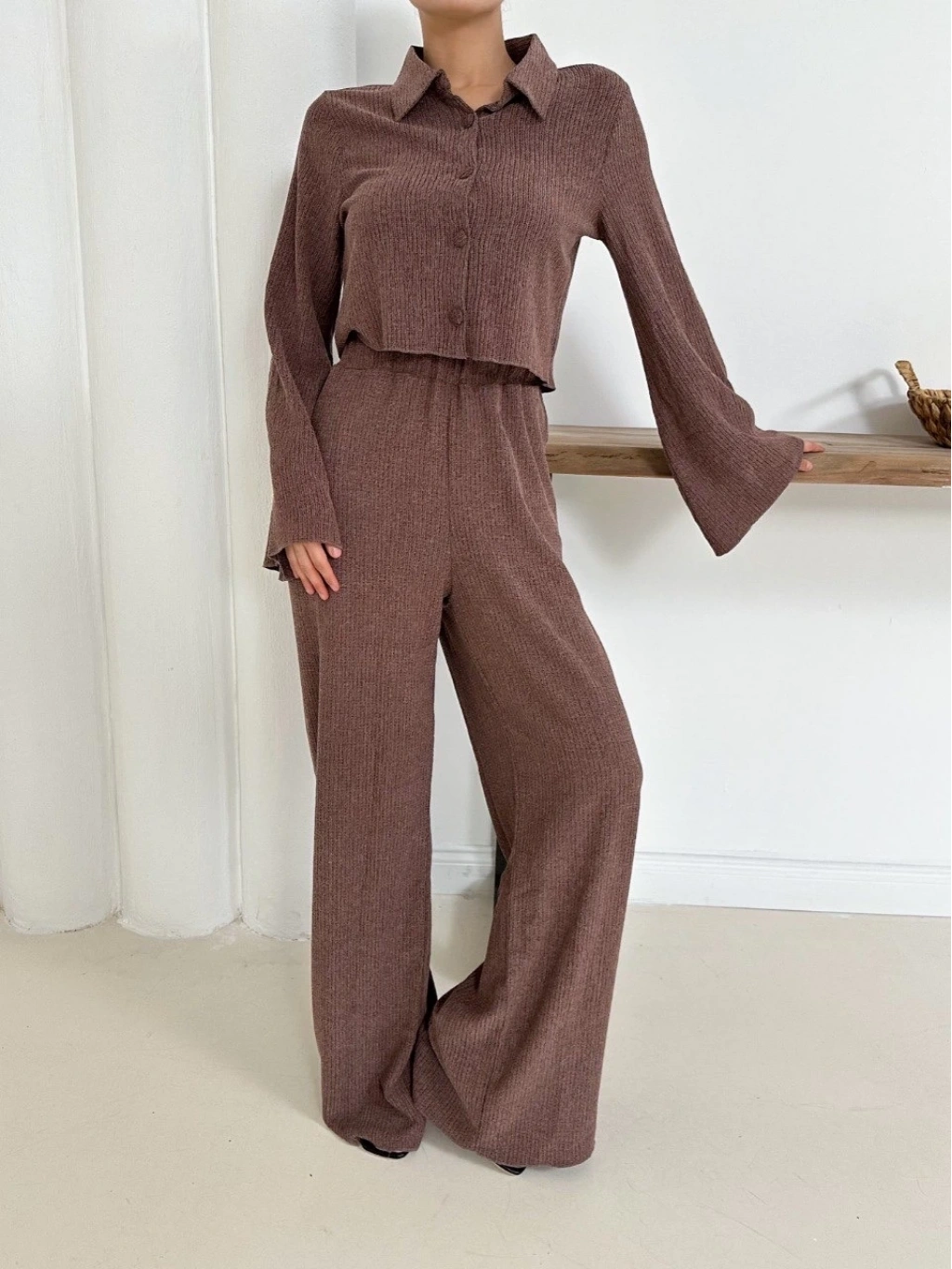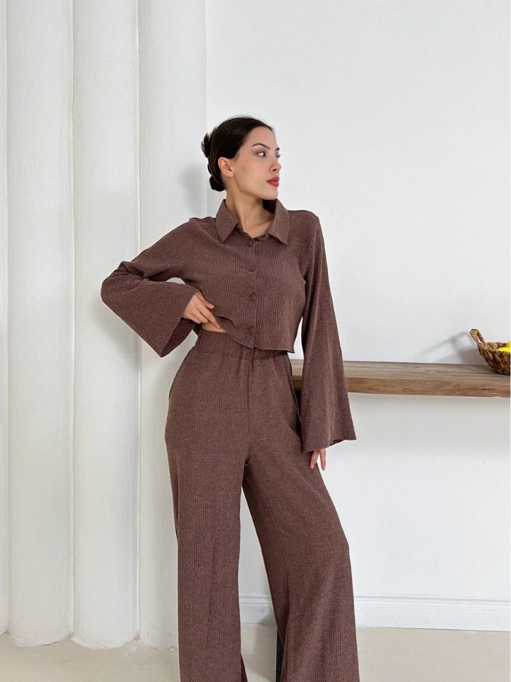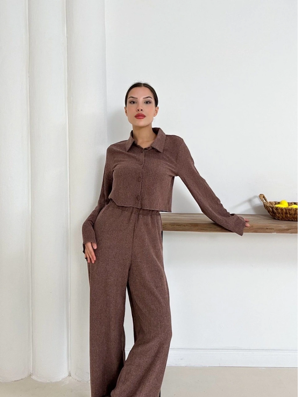 BİÇOMİ Gömlek yaka kaplama düğmeli takım kahve st265866