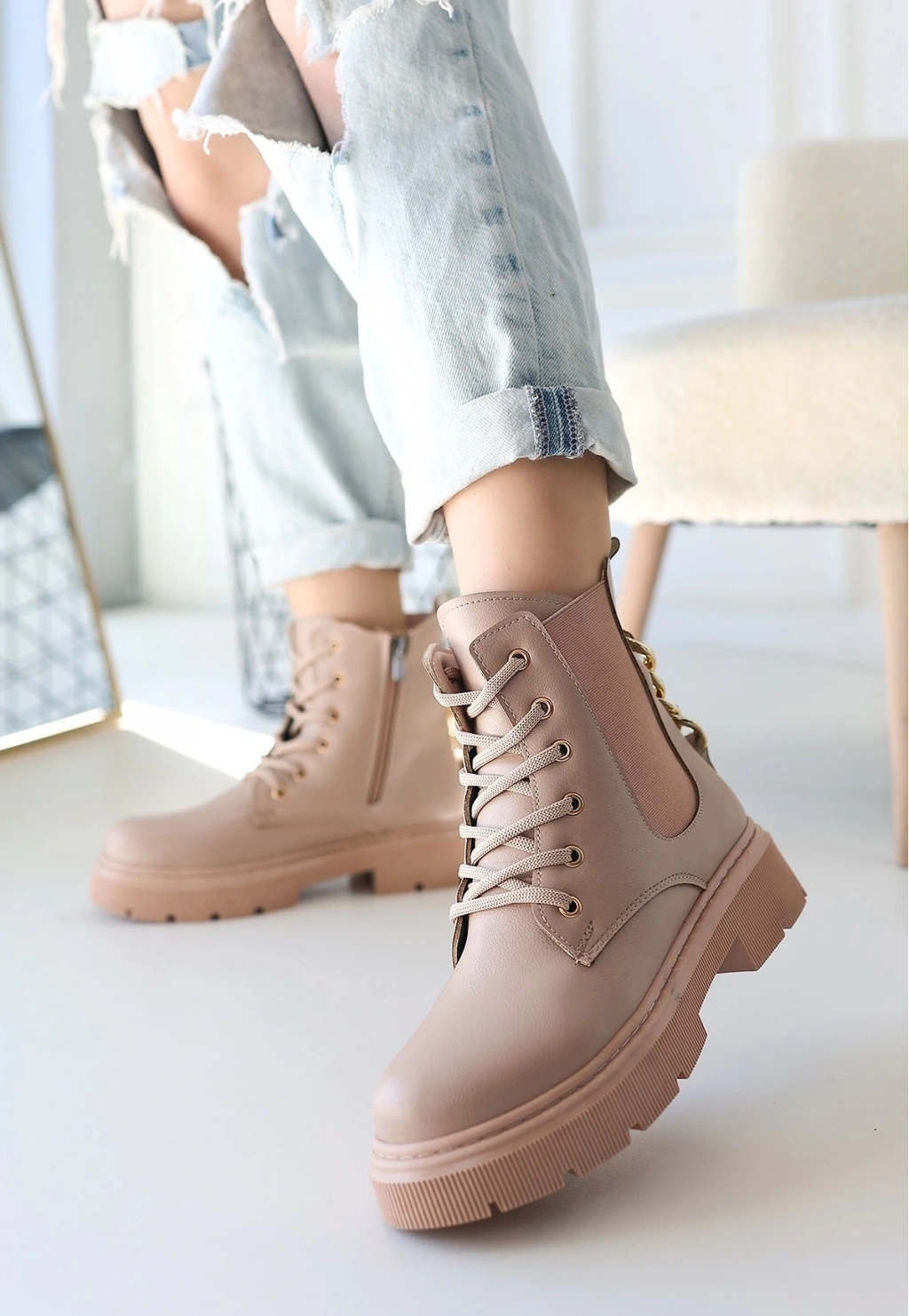 BİÇOMİ Harte Nude Cilt Bağcıklı Bot