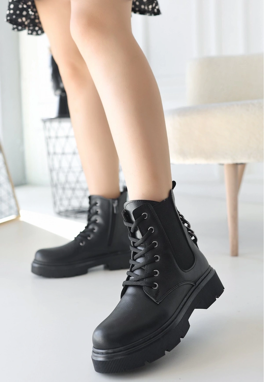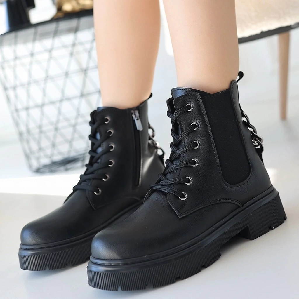 Detay : Topuklu Yandan Fermuarlı Bağcıklı Bot