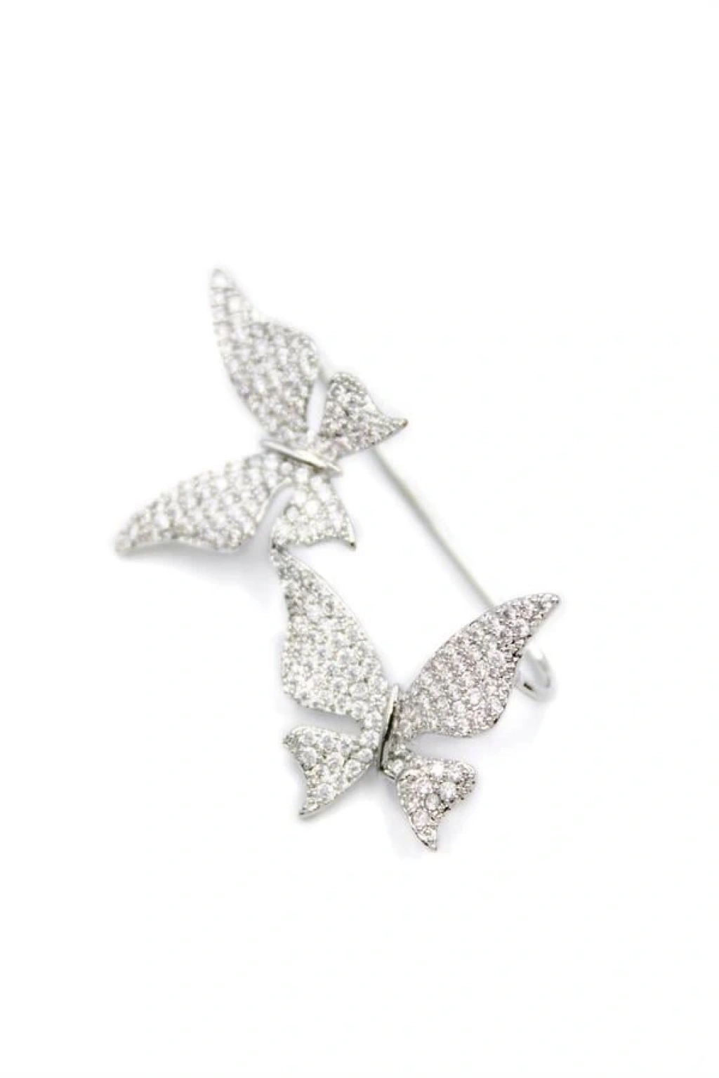 İkili Kelebek Kıkırdak Küpe - Gümüş