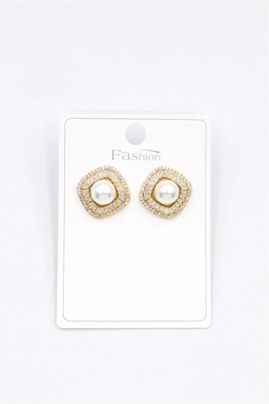 biçomi İncili Baget Taşlı Küpe - Altın