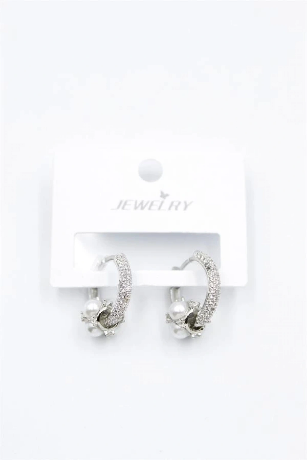 biçomi İncili Taşlı Halka Küpe - Gümüş